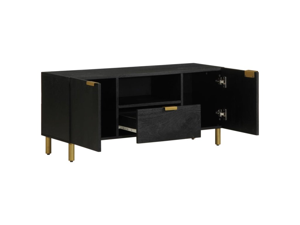 - Kovové úchytky: Tato TV skříňka je vybavena kovovými úchytkami, které usnadňují její otevírání a zároveň dodají jejímu designu stylový industriální nádech.