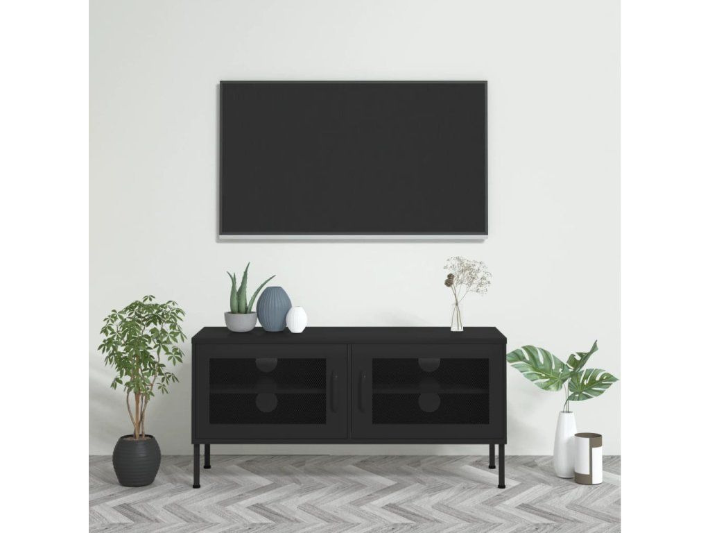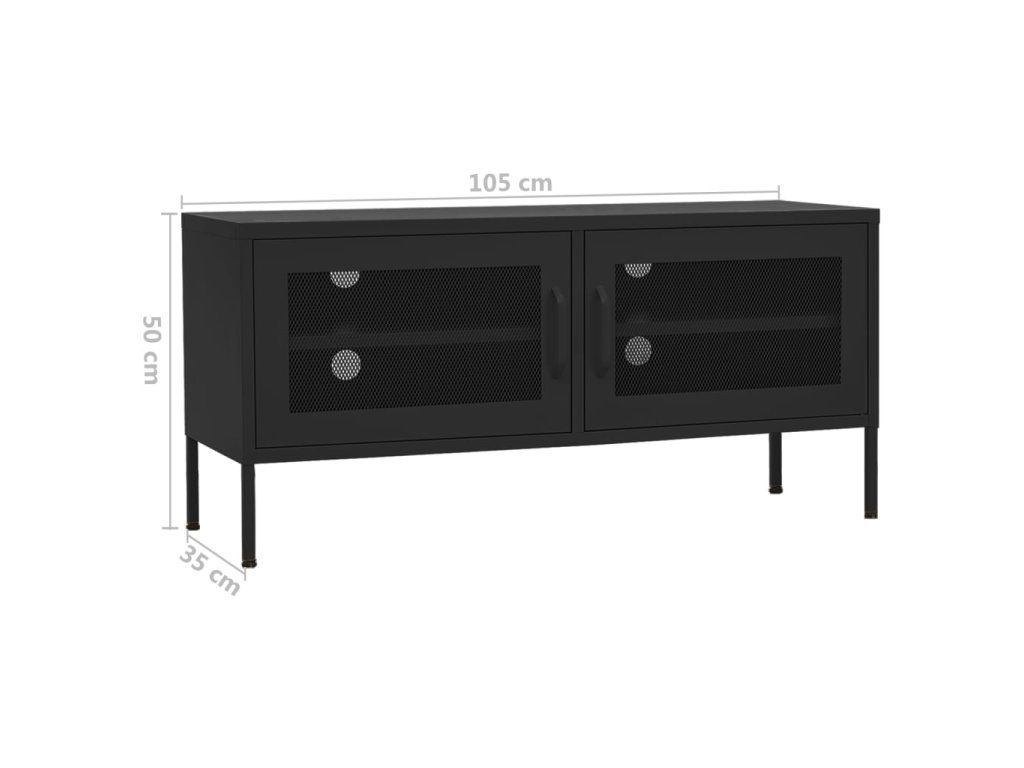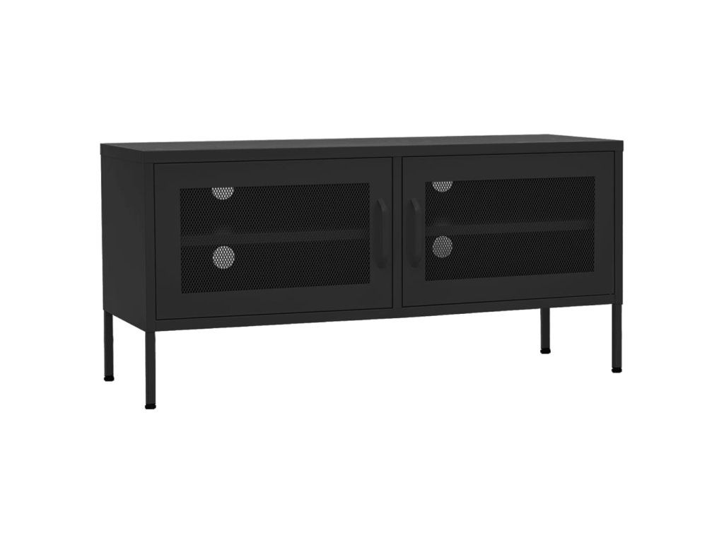 Ocelová konstrukce této TV skříňky zaručuje vysokou odolnost a dlouhou životnost. Ve spodní části se nachází nivelační nohy, které umožňují nastavit výšku podle vašich potřeb. TV stolek má 2 mřížkovaná dvířka a uvnitř 1 polici, poskytne vám tedy spoustu místa k uložení vašich DVD, časopisů a dalších nezbytností. V zadní stěně navíc najdete 4 otvory na protažení kabelů od mediálních a elektronických zařízení. Skříňku snadno očistíte vlhkým hadříkem.