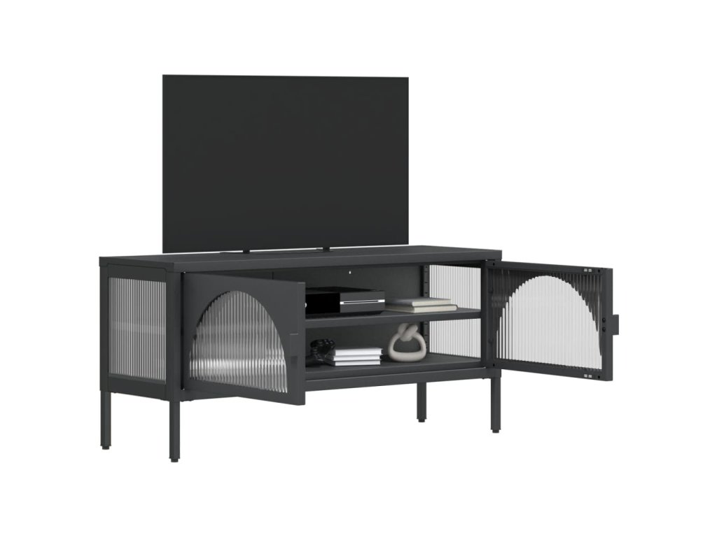 - Stabilní rám: Rám TV skříňky je vyroben z práškově lakované oceli. Ocel je mimořádně tvrdý a pevný materiál. Zajišťuje pevnost a stabilitu. Práškové lakování vytváří na oceli ochrannou vrstvu proti opotřebení.
