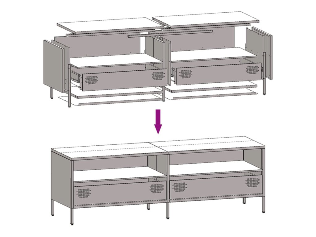 - Stabilní materiál: Rám TV skříňky je vyroben z oceli válcované za studena. Ocel válcovaná za studena je druh nízkouhlíkové oceli vyráběné metodou válcování za studena a zpracovávané při teplotách blízkých běžným pokojovým teplotám. Ocel válcovaná za studena má hladší povrch, větší pevnost a vyšší přesnost.