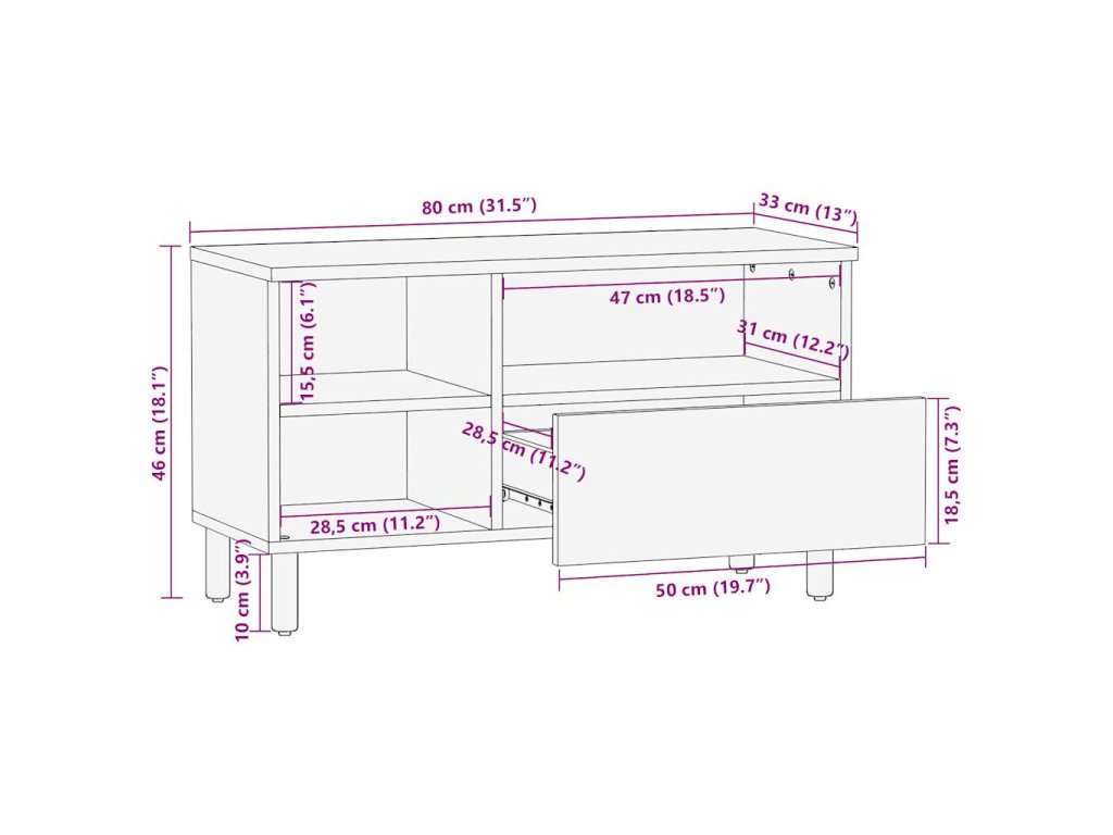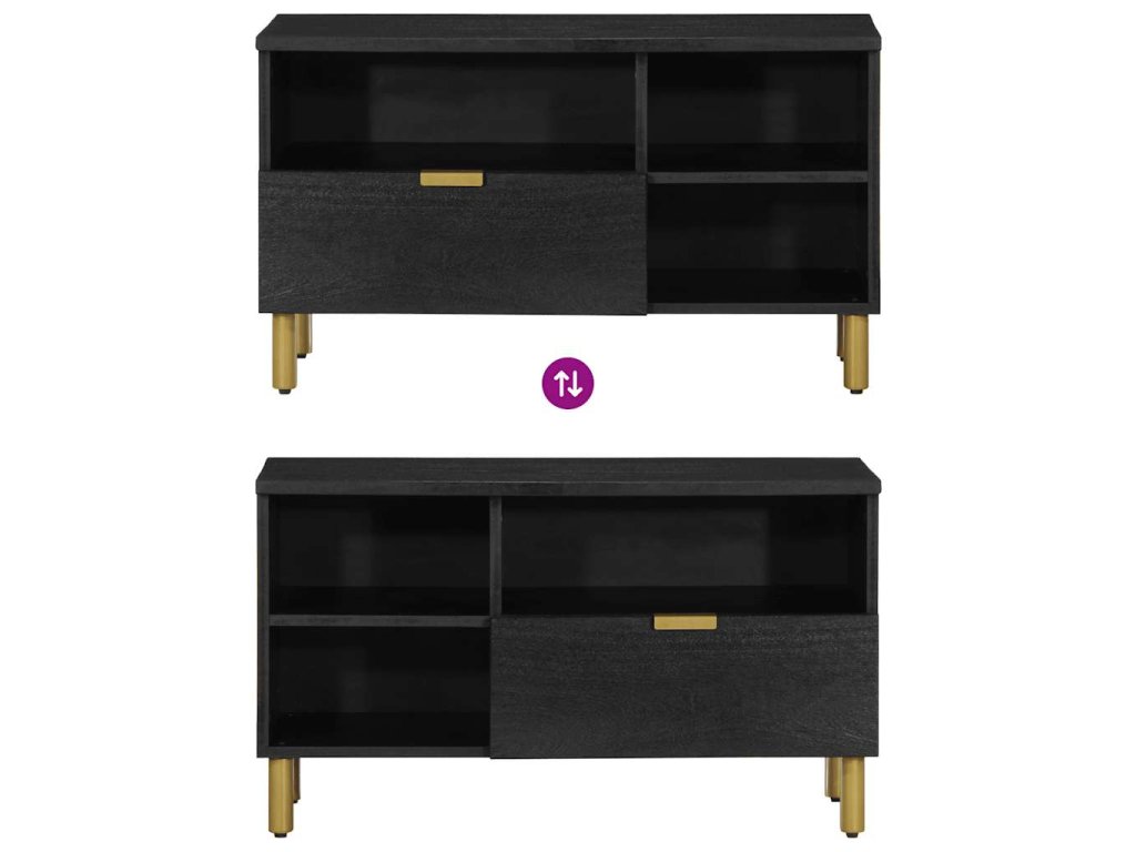 - Kovové úchytky: Tato TV skříňka je vybavena kovovými úchytkami, které usnadňují její otevírání a zároveň dodají jejímu designu stylový industriální nádech.