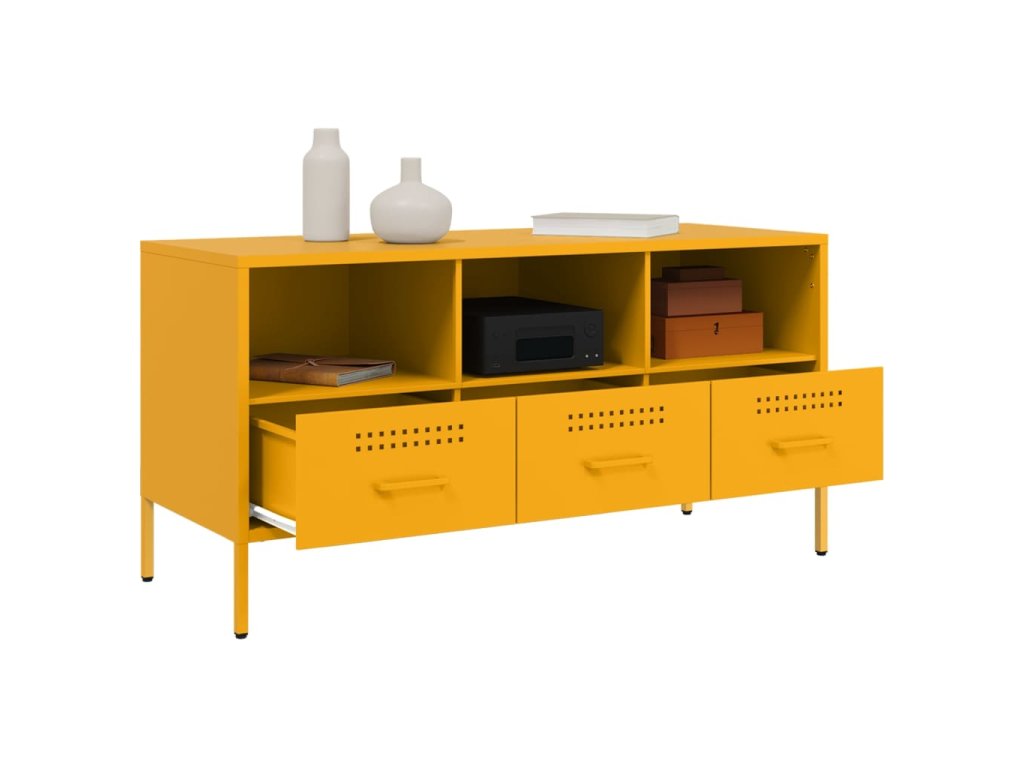 - Stabilní materiál: Rám TV skříňky je vyroben z oceli válcované za studena. Ocel válcovaná za studena je druh nízkouhlíkové oceli vyráběné metodou válcování za studena a zpracovávané při teplotách blízkých běžným pokojovým teplotám. Ocel válcovaná za studena má hladší povrch, větší pevnost a vyšší přesnost.