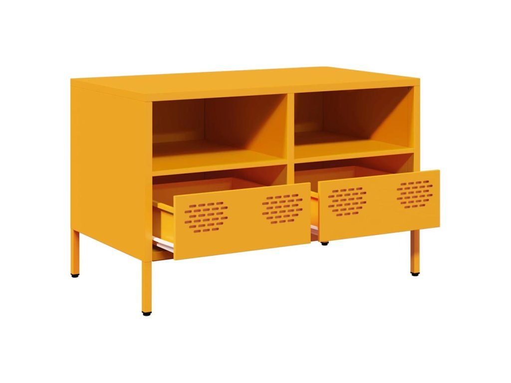 - Stabilní materiál: Rám TV skříňky je vyroben z oceli válcované za studena. Ocel válcovaná za studena je druh nízkouhlíkové oceli vyráběné metodou válcování za studena a zpracovávané při teplotách blízkých běžným pokojovým teplotám. Ocel válcovaná za studena má hladší povrch, větší pevnost a vyšší přesnost.
