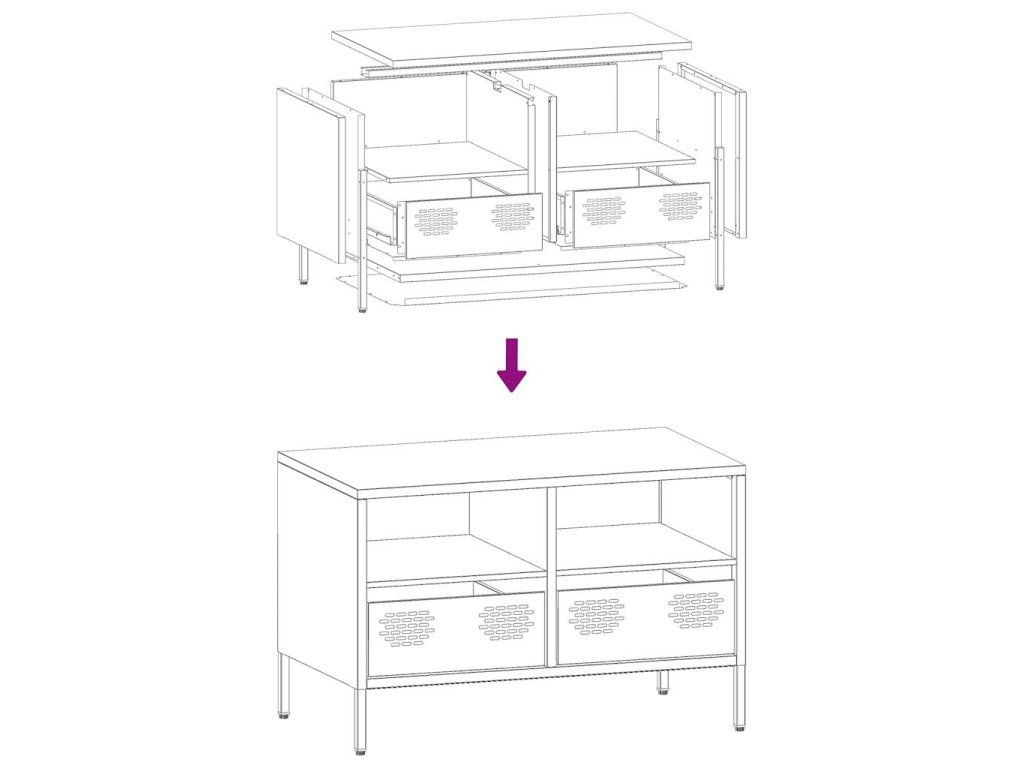 Tato bytelná TV skříňka v industriálním stylu se stane nadčasovým doplňkem vašeho obývacího pokoje nebo ložnice.