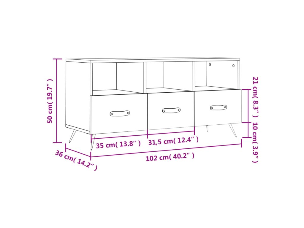 - Spousta úložného prostoru: TV stolek je vybaven 3 přihrádkami a 3 zásuvkami, takže představuje ideální místo k uložení vašich časopisů, DVD nebo jiných věcí.