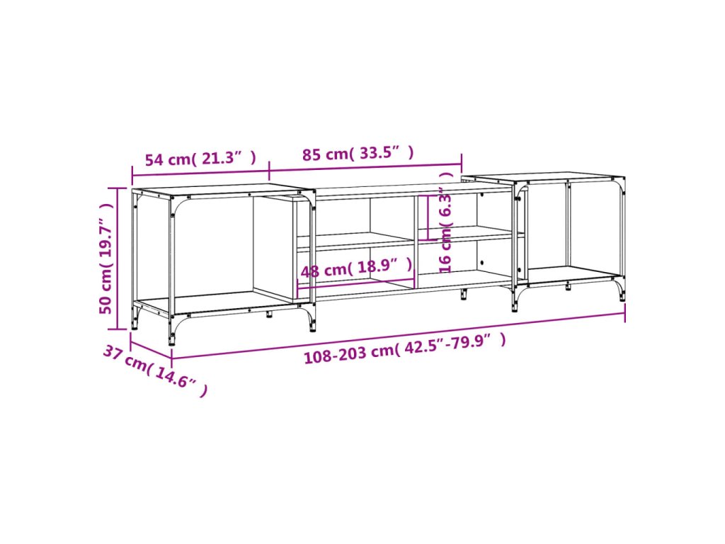 - Nastavitelná konstrukce: TV konzola je nastavitelná na šířku podle vašich potřeb. Nastavitelné nožičky s plastovými podložkami zaručí, že vaše skříňka na média bude vyrovnaná i na nerovném povrchu a zároveň zvyšují její stabilitu.