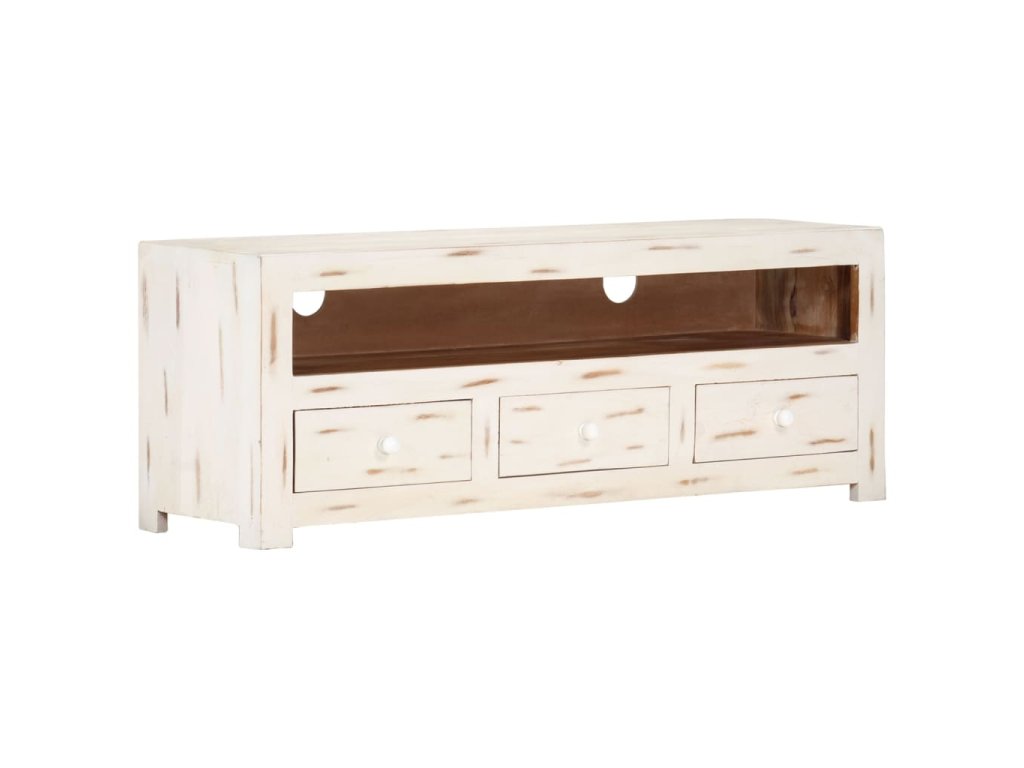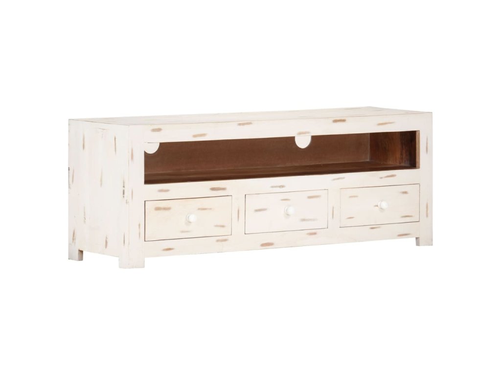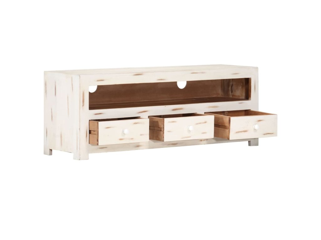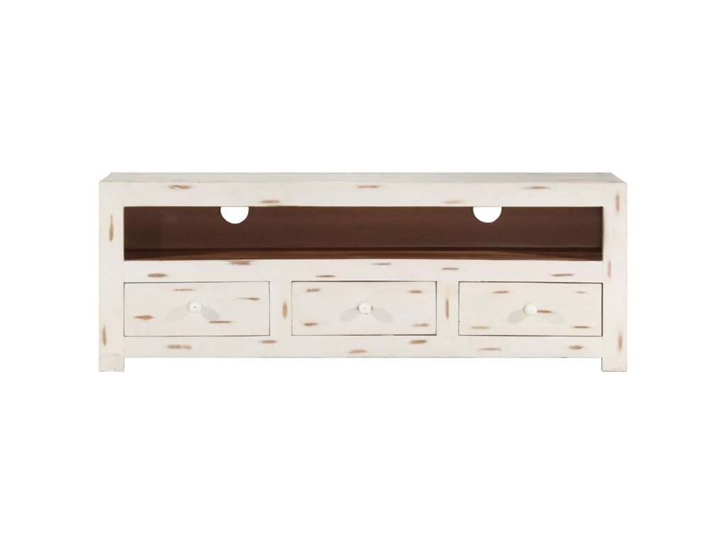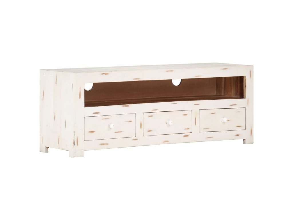 TV stolek je vybaven 3 zásuvkami a 1 úložnou přihrádkou a poskytuje dostatek prostoru pro uložení vašich multimediálních zařízení, herních konzolí nebo ukládání knih, časopisů či jiných drobností. Stereo skříňka je vyrobena z masivního akáciového dřeva a ošetřena bílým nátěrem, který vyzařuje moderní vzhled. Povzneste svůj interiér na zcela novou úroveň s naší moderní skříňkou na plazmovou televizi!