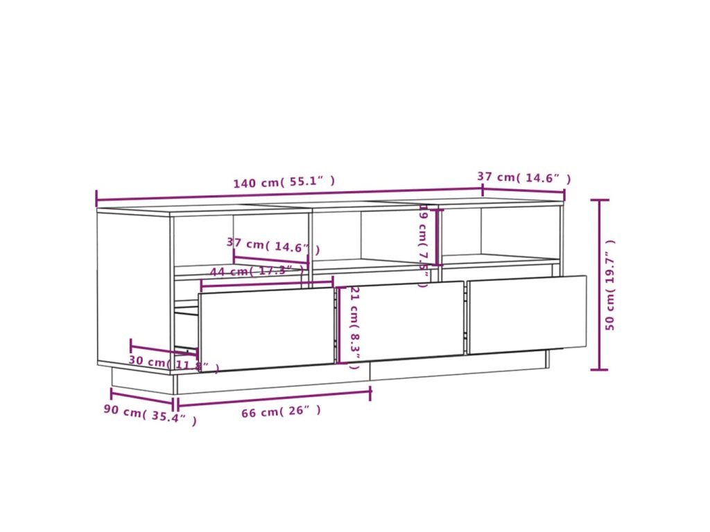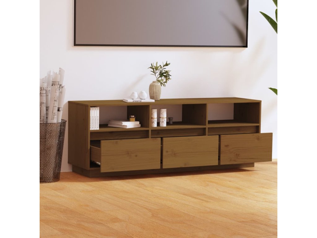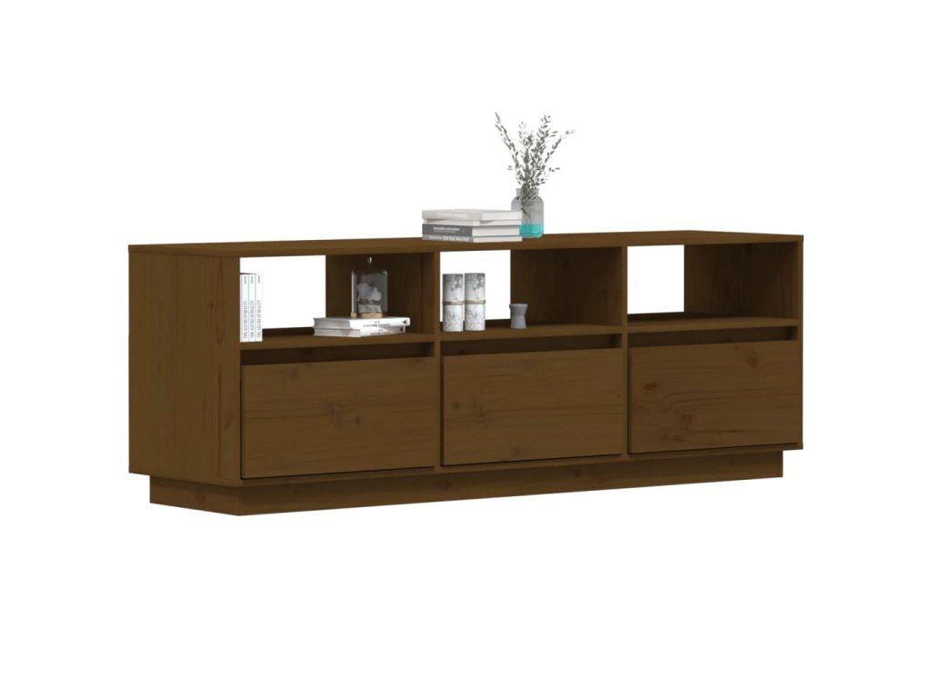 Tato nízká skříňka se soklem je vyrobená z masivního borového dřeva a vyznačuje se stabilní a odolnou konstrukcí. Je vybavená 3 přihrádkami a 3 dvířky, skvěle se tedy hodí pro přehledné uložení DVD, herní konzole, časopisů a dalších věcí. Televizní skříňka se navíc snadno čistí vlhkým hadříkem.