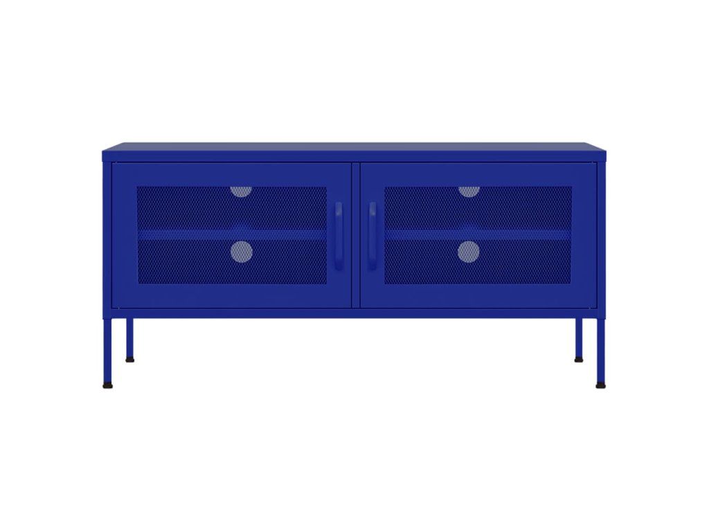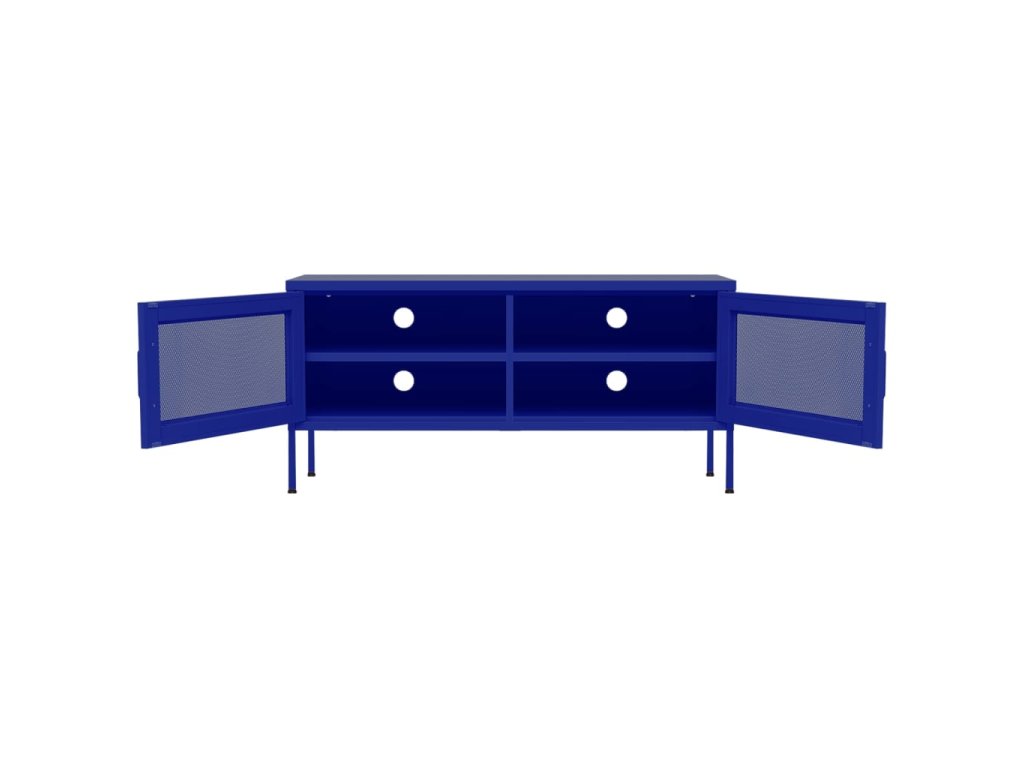 Ocelová konstrukce této TV skříňky zaručuje vysokou odolnost a dlouhou životnost. Ve spodní části se nachází nivelační nohy, které umožňují nastavit výšku podle vašich potřeb. TV stolek má 2 mřížkovaná dvířka a uvnitř 1 polici, poskytne vám tedy spoustu místa k uložení vašich DVD, časopisů a dalších nezbytností. V zadní stěně navíc najdete 4 otvory na protažení kabelů od mediálních a elektronických zařízení. Skříňku snadno očistíte vlhkým hadříkem.