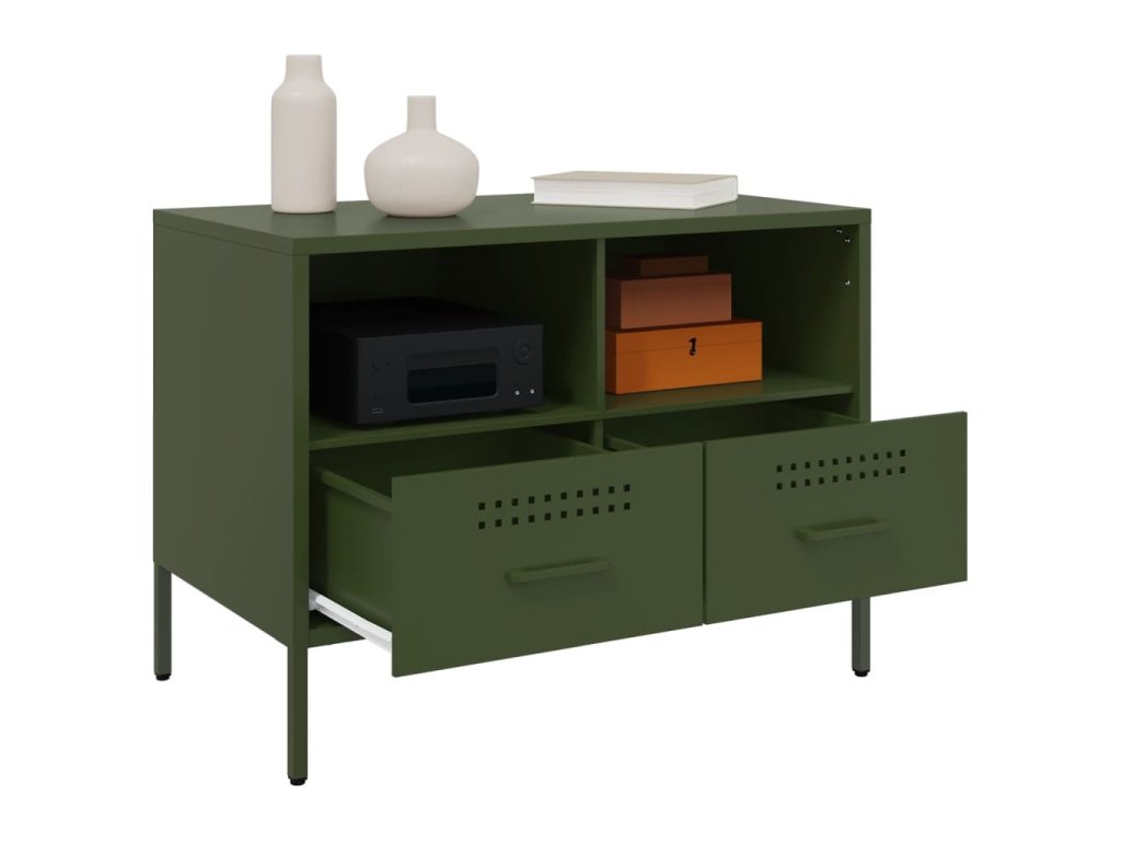 - Stabilní materiál: Rám TV skříňky je vyroben z oceli válcované za studena. Ocel válcovaná za studena je druh nízkouhlíkové oceli vyráběné metodou válcování za studena a zpracovávané při teplotách blízkých běžným pokojovým teplotám. Ocel válcovaná za studena má hladší povrch, větší pevnost a vyšší přesnost.