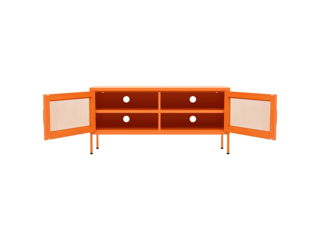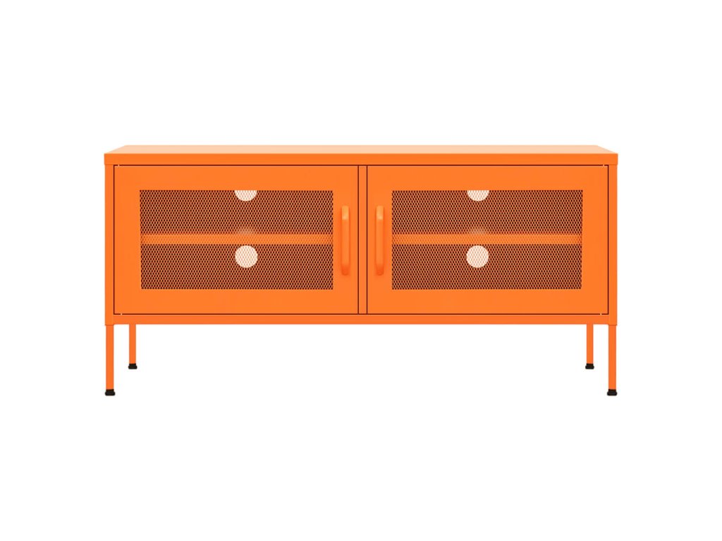 Ocelová konstrukce této TV skříňky zaručuje vysokou odolnost a dlouhou životnost. Ve spodní části se nachází nivelační nohy, které umožňují nastavit výšku podle vašich potřeb. TV stolek má 2 mřížkovaná dvířka a uvnitř 1 polici, poskytne vám tedy spoustu místa k uložení vašich DVD, časopisů a dalších nezbytností. V zadní stěně navíc najdete 4 otvory na protažení kabelů od mediálních a elektronických zařízení. Skříňku snadno očistíte vlhkým hadříkem.