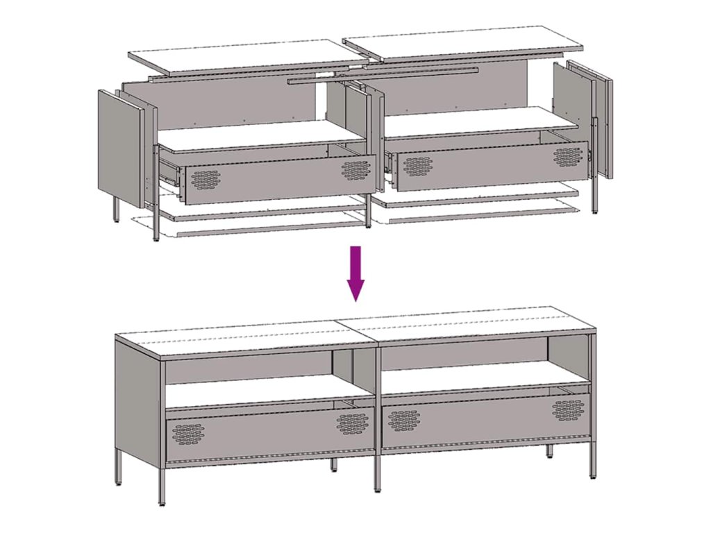 Tato bytelná TV skříňka v industriálním stylu se stane nadčasovým doplňkem vašeho obývacího pokoje nebo ložnice.