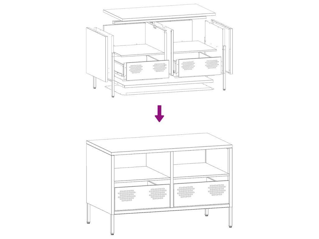 Tato bytelná TV skříňka v industriálním stylu se stane nadčasovým doplňkem vašeho obývacího pokoje nebo ložnice.