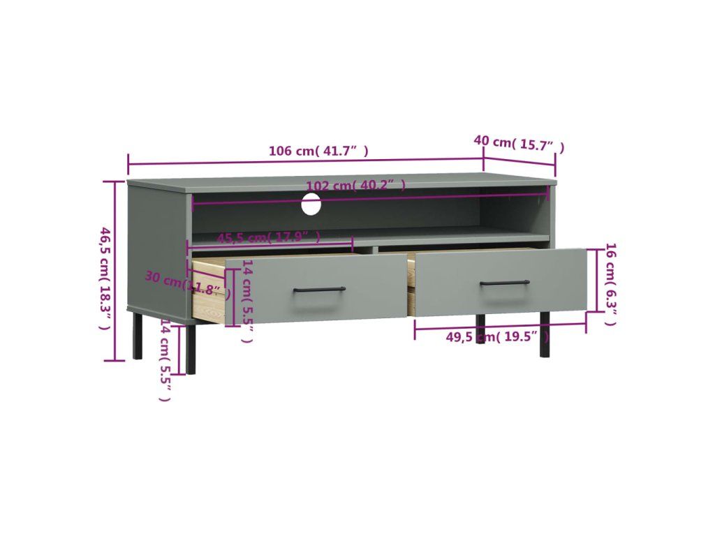 - Spousta úložného prostoru: TV jednotka je vybavena 1 přihrádkou 2 zásuvkami, takže představuje ideální místo k uložení vašich časopisů, DVD nebo jiných věcí.