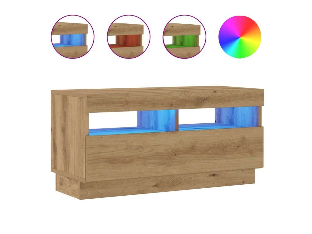 - RGB LED osvětlení: Televizní stolek je vybavený RGB LED světly s několika různými nabídkami, které vám umožní změnit barvu světel nebo nechat světla přizpůsobit automaticky. LED osvětlení podtrhuje moderní vzhled skříňky a zdůrazňuje její trendy styl.