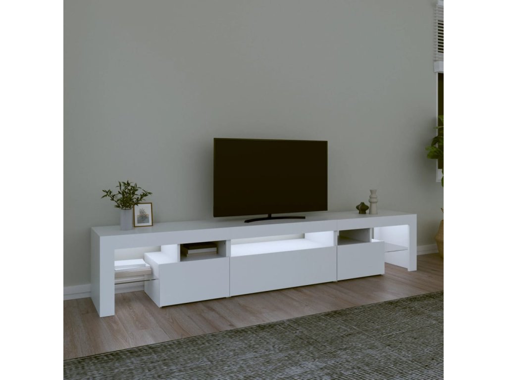 Moderní a praktický design této TV skříňky s LED osvětlením zaujme ve vašem pokoji na první pohled.