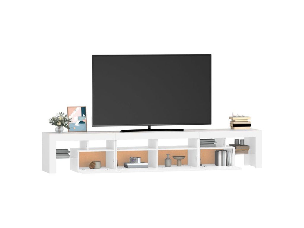 Moderní a praktický design této TV skříňky s LED osvětlením zaujme ve vašem pokoji na první pohled.