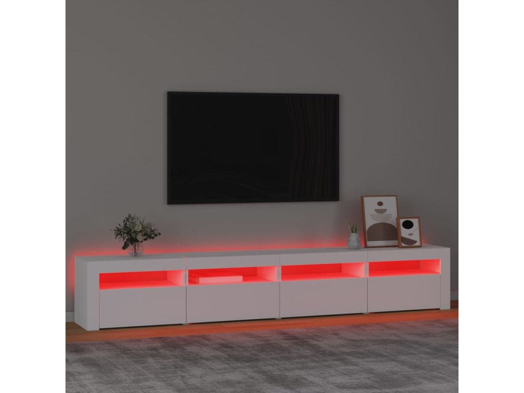 Moderní a praktický design této TV skříňky s LED osvětlením zaujme ve vašem pokoji na první pohled.