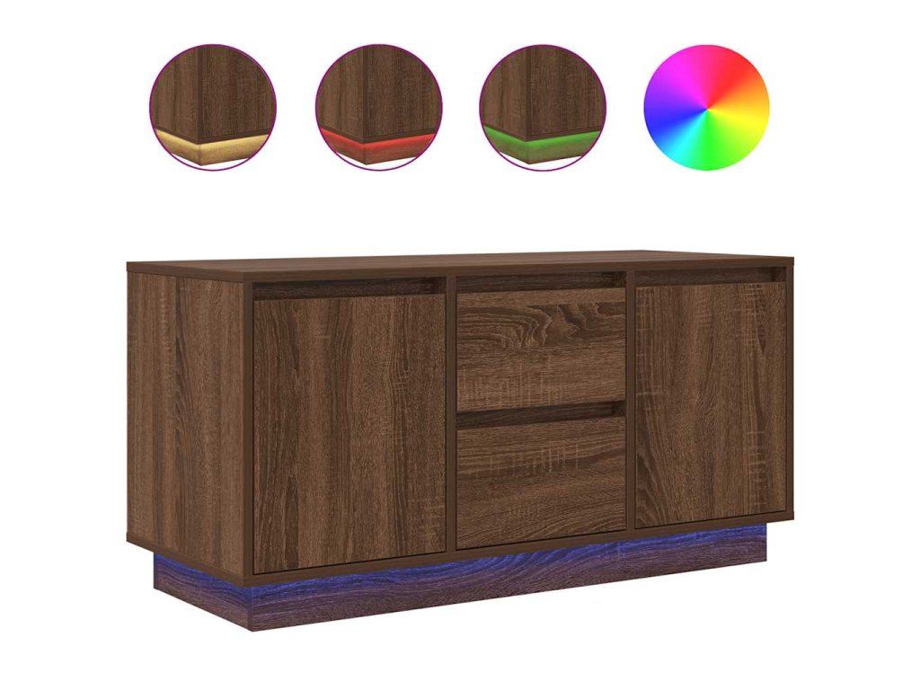 - RGB LED světla pro příjemnou atmosféru: Tato skříňka je vybavena LED osvětlením, které lze snadno nastavit a vytvořit tak individuální světelnou atmosféru. Umožňuje přizpůsobit režimy, barvy a jas, abyste si vytvořili příjemnou atmosféru svého interiéru.