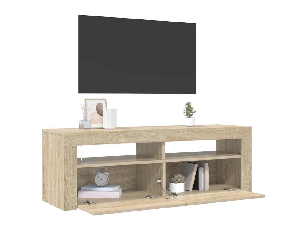 Tato skříňka se vyznačuje robustní konstrukcí, takže má velmi dlouhou životnost. Navíc vám poskytne spoustu místa pro přehledné uspořádání vašeho DVD přehrávače, herní konzole, satelitního zařízení i mediálních nosičů. Televizní stolek je vybavený RGB LED světly s několika různými nabídkami, které vám umožní změnit barvu světel nebo nechat světla přizpůsobit automaticky. LED osvětlení podtrhuje moderní vzhled skříňky a zdůrazňuje její trendy styl. TV stolek snadno očistíte vlhkým hadříkem.