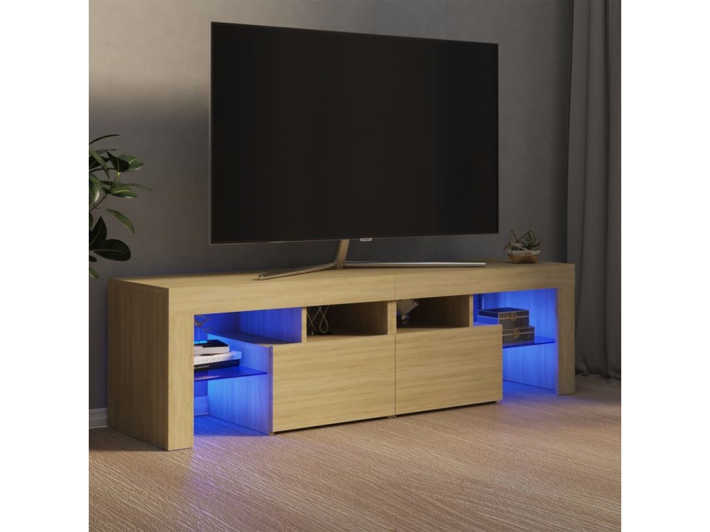 - Barevné LED osvětlení: Televizní stolek je vybavený RGB LED světly s několika různými nabídkami, které vám umožní změnit barvu světel nebo nechat světla přizpůsobit automaticky. LED osvětlení podtrhuje moderní vzhled skříňky a zdůrazňuje její trendy styl.