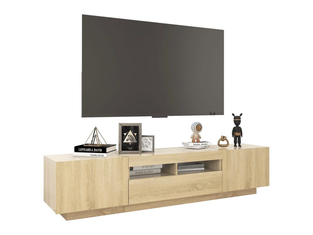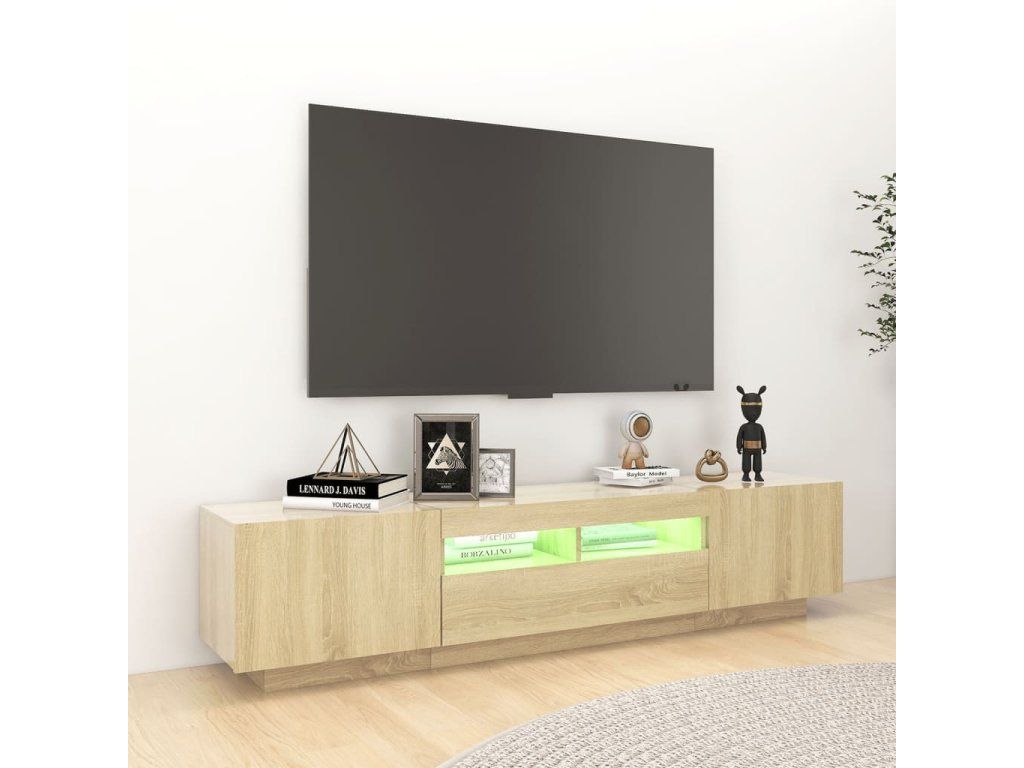 Tato skříňka se vyznačuje robustní konstrukcí, takže má velmi dlouhou životnost. Navíc vám poskytne spoustu místa pro přehledné uspořádání vašeho DVD přehrávače, herní konzole, satelitního zařízení i mediálních nosičů. Televizní stolek je vybaven RGB LED světly s několika různými nabídkami, které vám umožní změnit barvu světel nebo nechat světla přizpůsobit automaticky. LED osvětlení podtrhuje moderní vzhled skříňky a zdůrazňuje její trendy styl. TV stolek snadno očistíte vlhkým hadříkem.