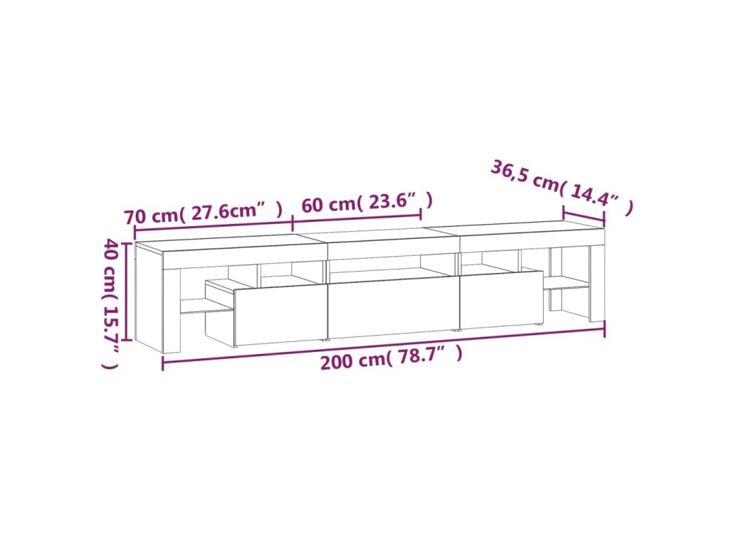 - Celkové rozměry: 200 x 36,5 x 40 cm (D x Š x V)