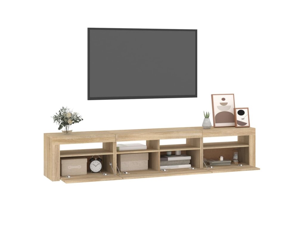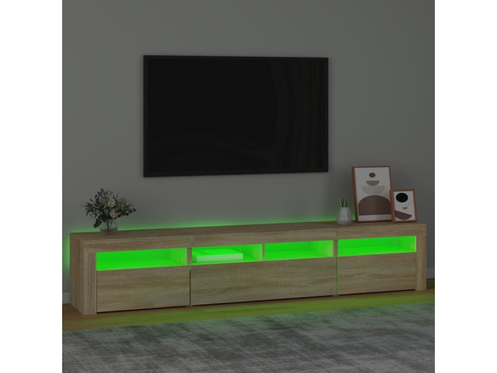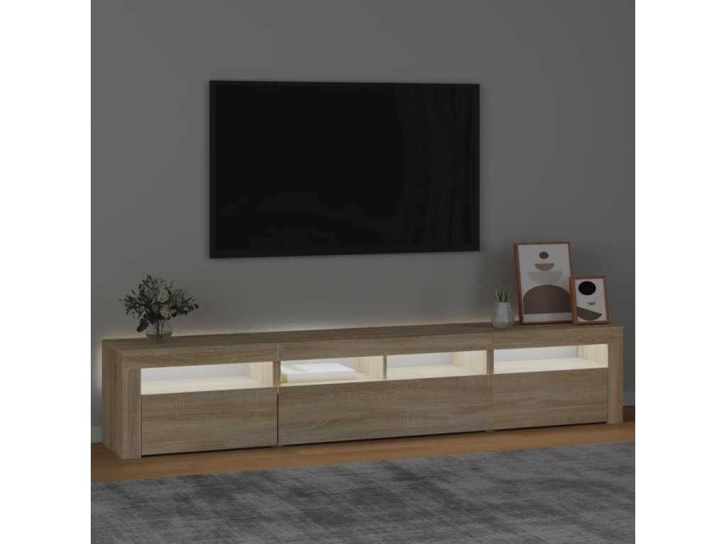 Moderní a praktický design této TV skříňky s LED osvětlením zaujme ve vašem pokoji na první pohled.