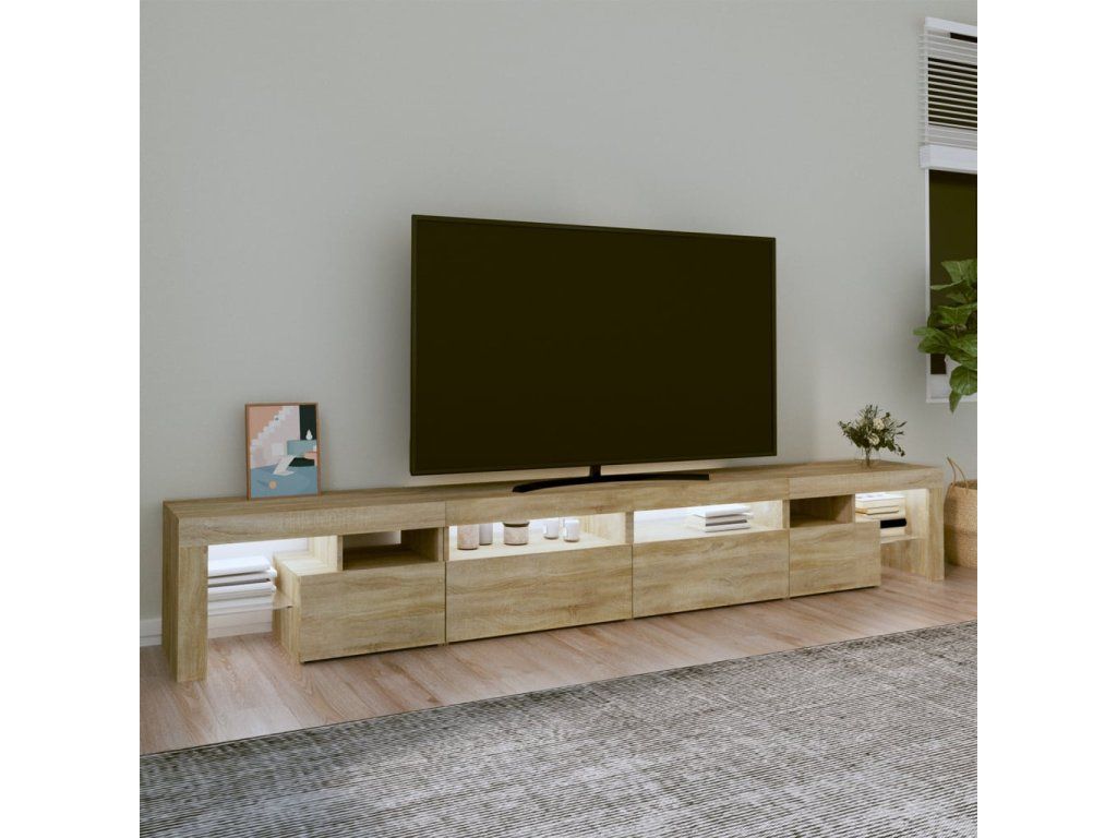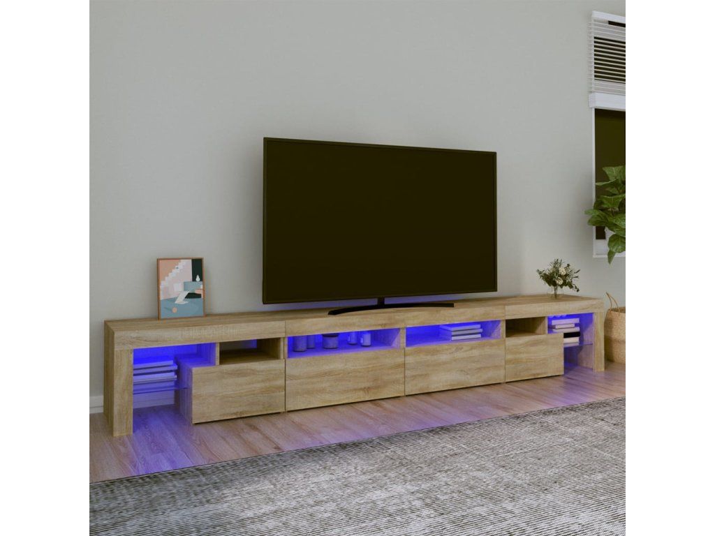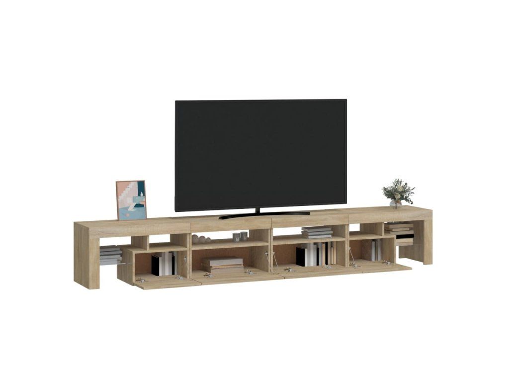 Moderní a praktický design této TV skříňky s LED osvětlením zaujme ve vašem pokoji na první pohled.