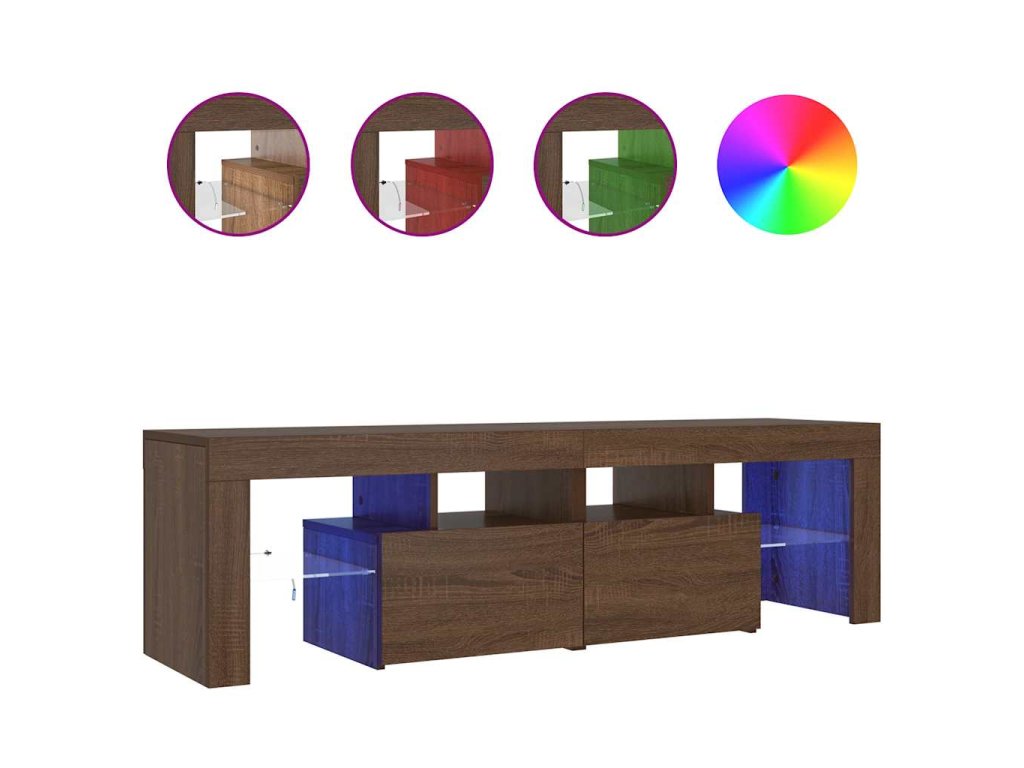 - Barevné LED osvětlení: Televizní stolek je vybavený RGB LED světly s několika různými nabídkami, které vám umožní změnit barvu světel nebo nechat světla přizpůsobit automaticky. LED osvětlení podtrhuje moderní vzhled skříňky a zdůrazňuje její trendy styl.