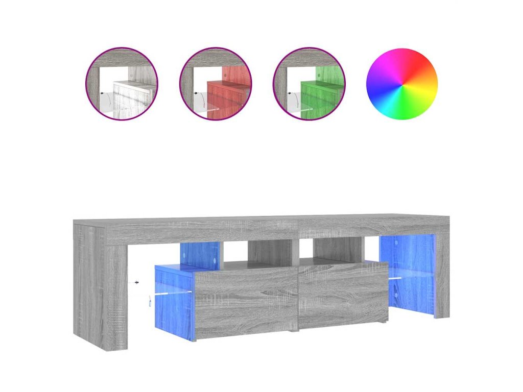 - Barevné LED osvětlení: Televizní stolek je vybavený RGB LED světly s několika různými nabídkami, které vám umožní změnit barvu světel nebo nechat světla přizpůsobit automaticky. LED osvětlení podtrhuje moderní vzhled skříňky a zdůrazňuje její trendy styl.