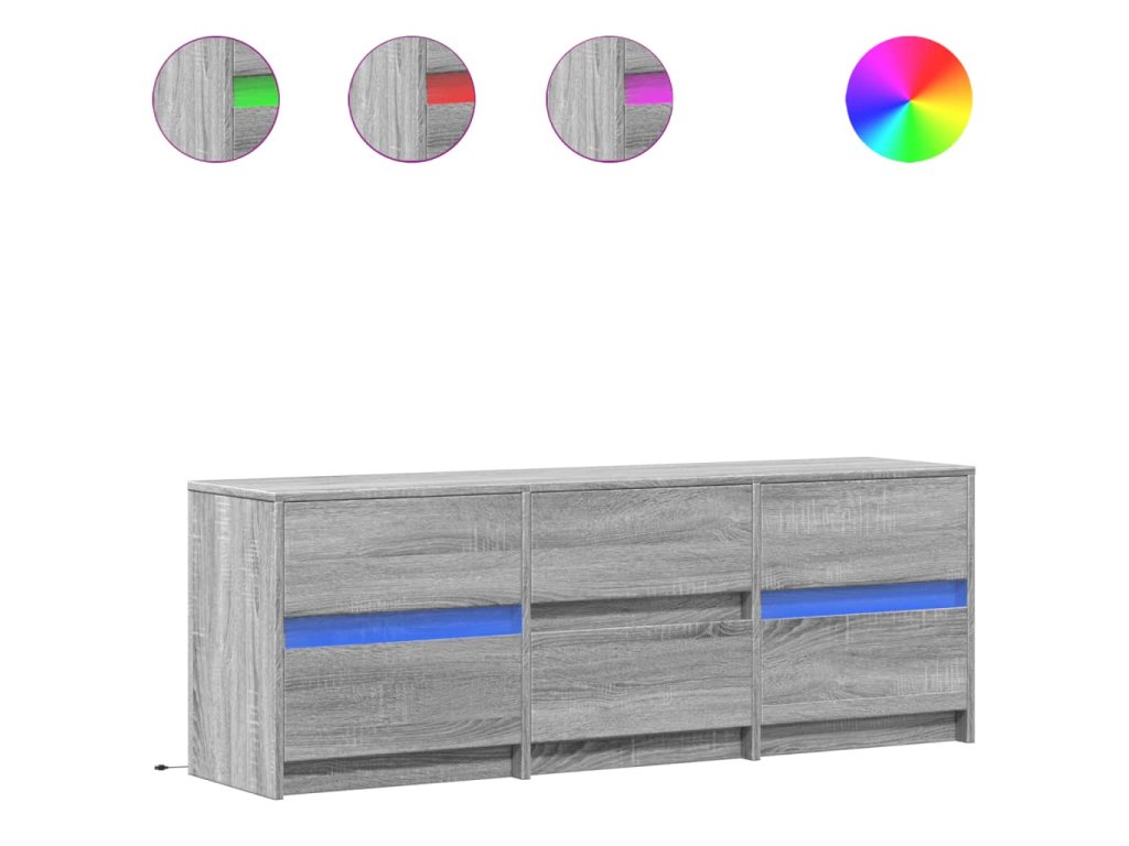 - RGB LED světla pro příjemnou atmosféru: Tento TV stolek je vybaven LED osvětlením, které lze snadno nastavit a vytvořit tak individuální světelnou atmosféru. Umožňuje přizpůsobit režimy, barvy a jas, abyste si vytvořili příjemnou atmosféru svého interiéru.