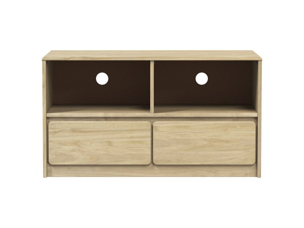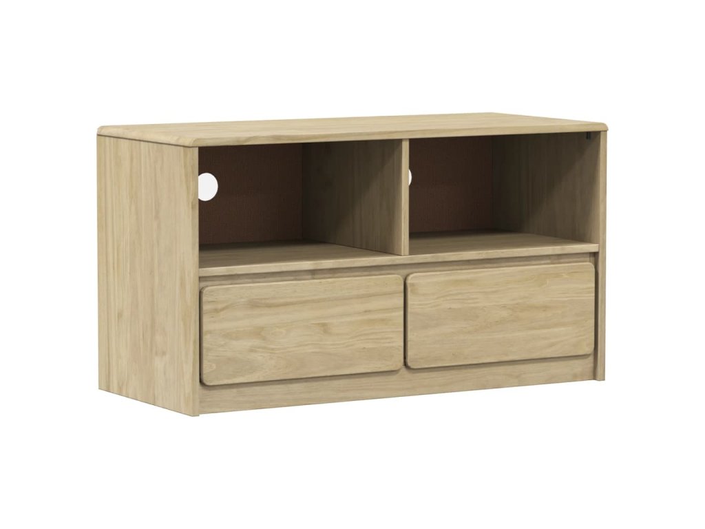 - Masivní borové dřevo: Masivní borové dřevo je krásný přírodní materiál.Borové dřevo má rovnou kresbu a obsahuje suky, které materiálu dodávají jeho charakteristický, rustikální vzhled.TV stolek je vyroben z masivního borového dřeva, je tedy robustní a stabilní.