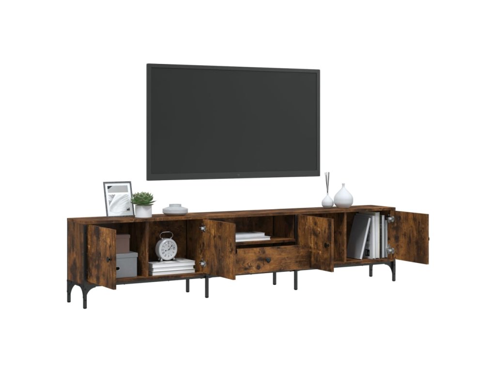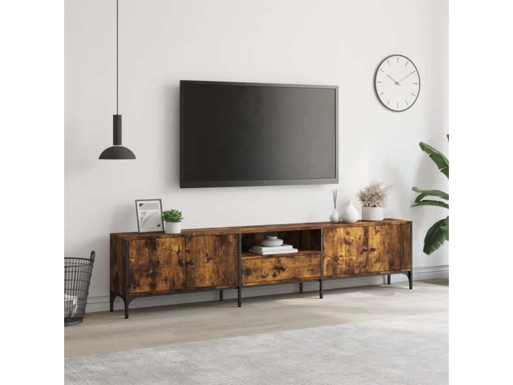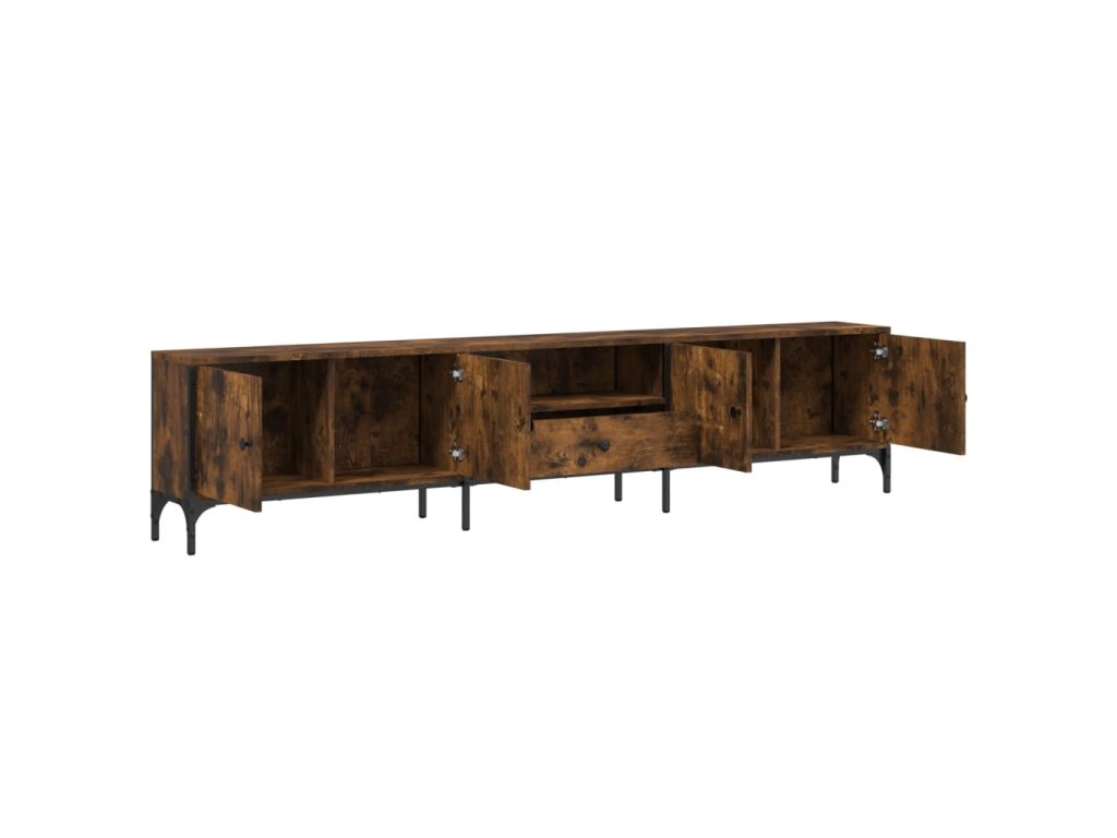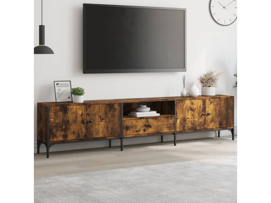 - Odolný a robustní materiál: Kompozitní dřevo je mimořádně kvalitní, má hladký povrch a vyznačuje se pevností, stabilitou a odolností proti vlhkosti. Kovový rám TV stolku zajišťuje pevnost a stabilitu.