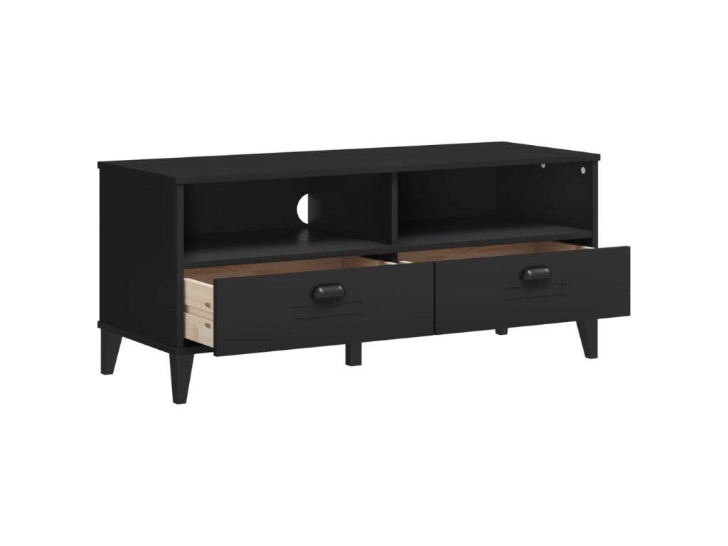 - Masivní borové dřevo: Masivní borové dřevo je krásný přírodní materiál. Borové dřevo má rovnou kresbu a obsahuje suky, které materiálu dodávají jeho charakteristický, rustikální vzhled. Televizní stolek je vyroben z masivního borového dřeva, je tedy odolný a robustní.