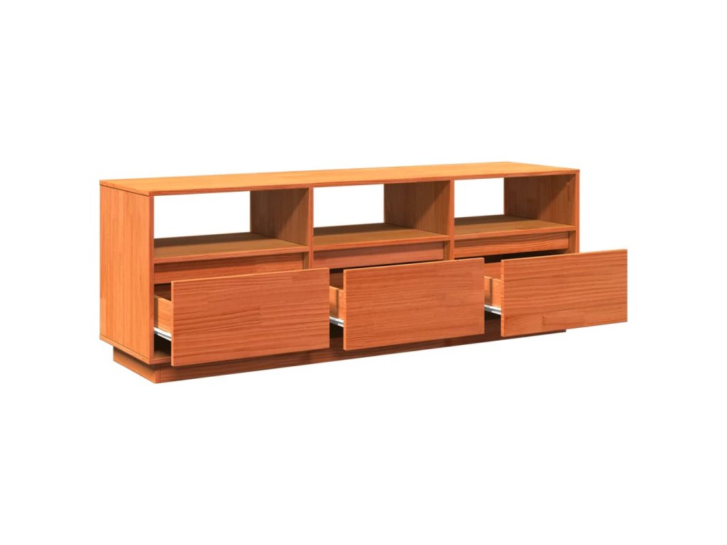 - Masivní borové dřevo: Masivní borové dřevo je krásný přírodní materiál. Borové dřevo má rovnou kresbu a obsahuje suky, které materiálu dodávají jeho charakteristický, rustikální vzhled. Televizní stolek je vyroben z masivního borového dřeva, je tedy odolný a robustní.