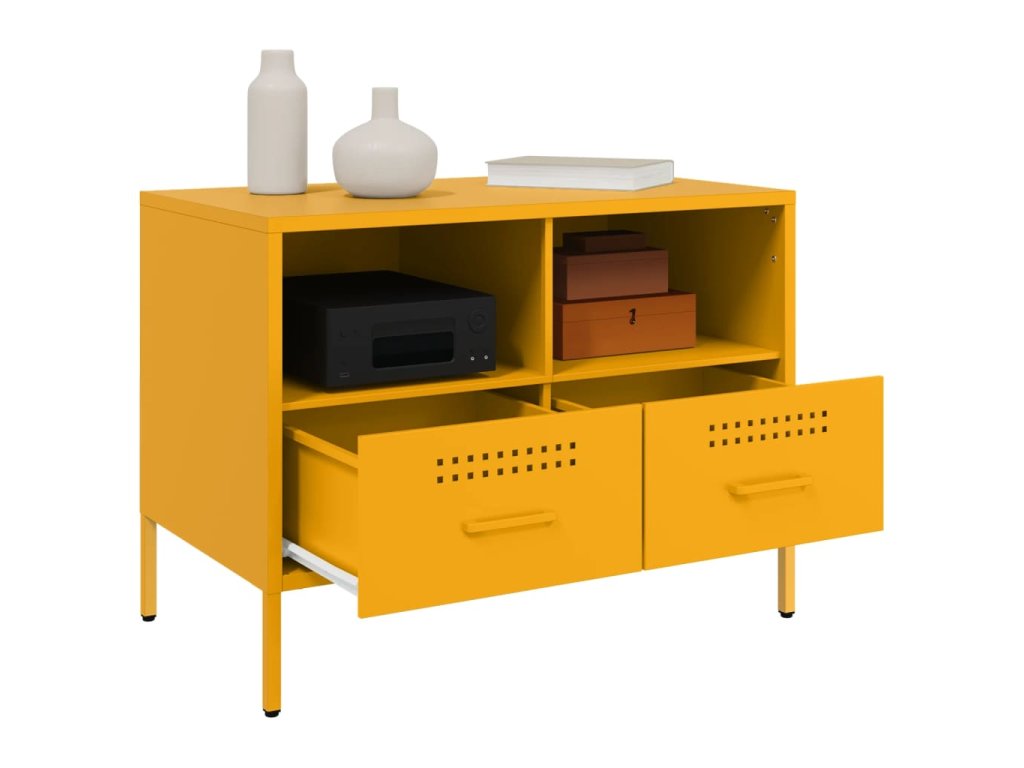 - Stabilní materiál: Rám TV skříňky je vyroben z oceli válcované za studena. Ocel válcovaná za studena je druh nízkouhlíkové oceli vyráběné metodou válcování za studena a zpracovávané při teplotách blízkých běžným pokojovým teplotám. Ocel válcovaná za studena má hladší povrch, větší pevnost a vyšší přesnost.