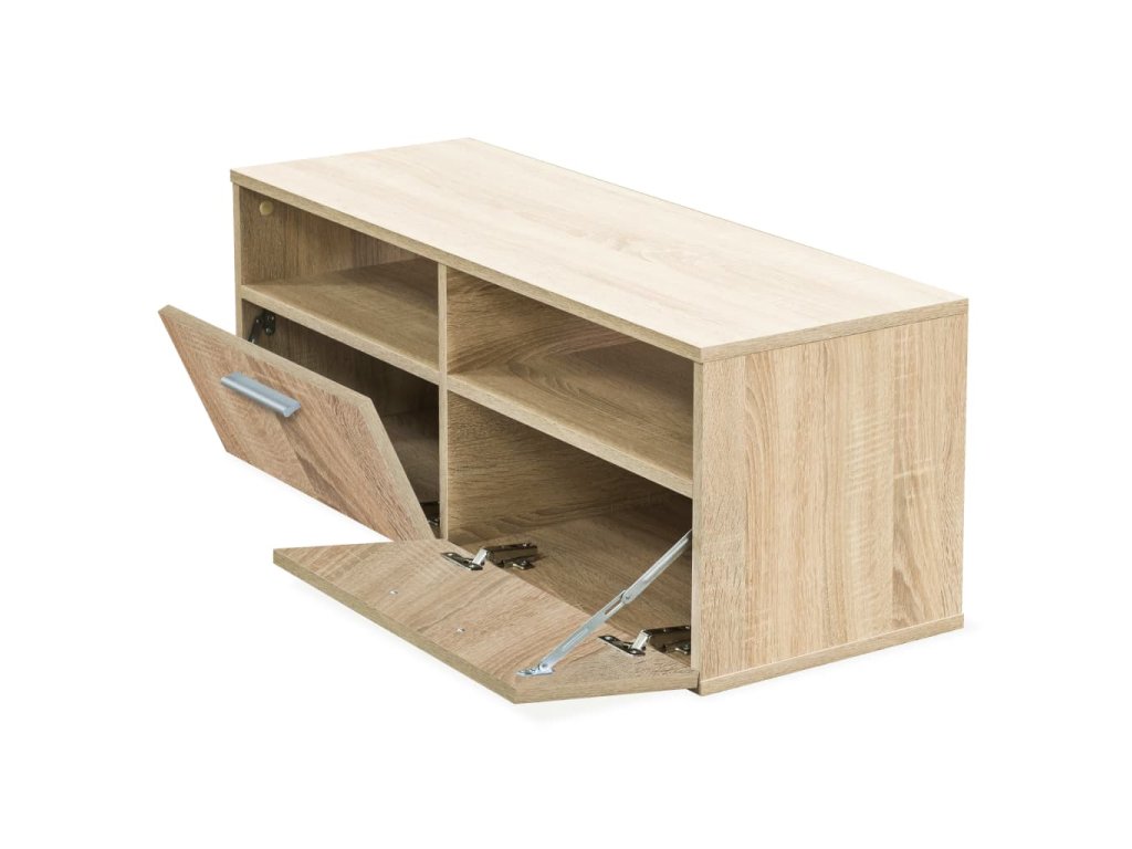 Oba stolky na multimediální zařízení jsou vyrobeny z dřevotřísky, kterou doplňují lišty z PVC. Jsou proto stabilní a odolné. Jsou vybaveny dvěma otevřenými policemi a skříňkami, jejichž dvířka se vyklápí směrem dolů. Lze do nich uložit nejen váš DVD přehrávač, ale také herní konzoli, satelitní přijímač a všechna vaše CD či DVD. Díky svým čistým liniím navíc i dobře vypadají. Můžete je bez obav postavit do obývacího pokoje či ložnice. Montáž je velmi snadná.