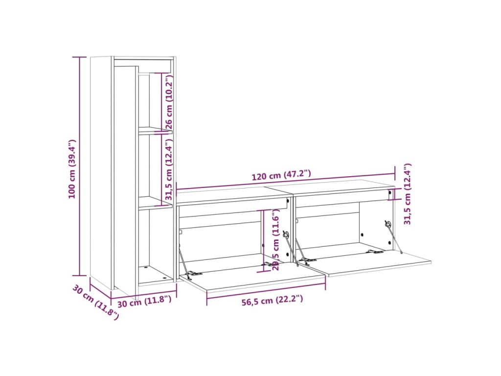 - 1x TV skříňka: 30 x 30 x 100 cm (Š x H x V)
