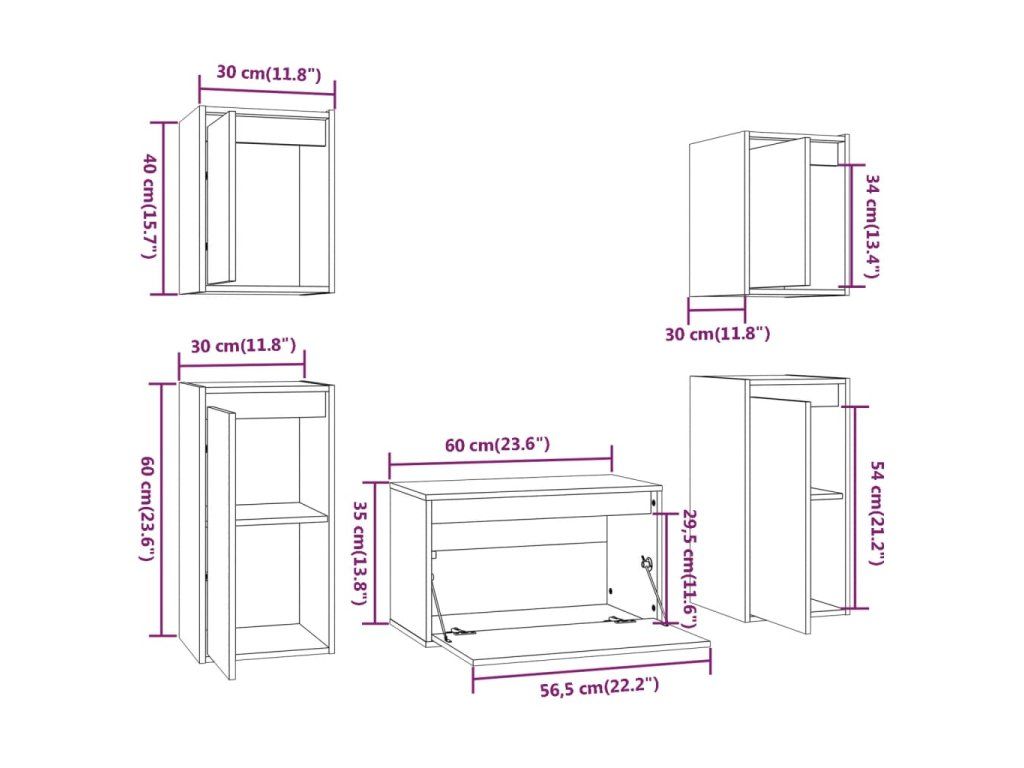 - 2 x TV skříňka: 30 x 30 x 60 cm (Š x H x V)