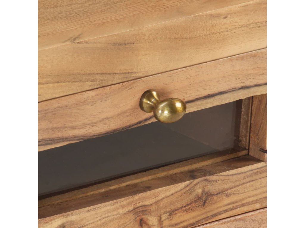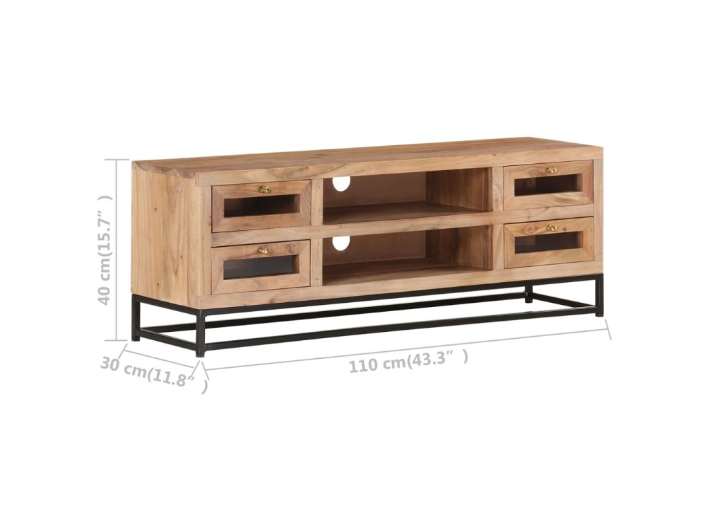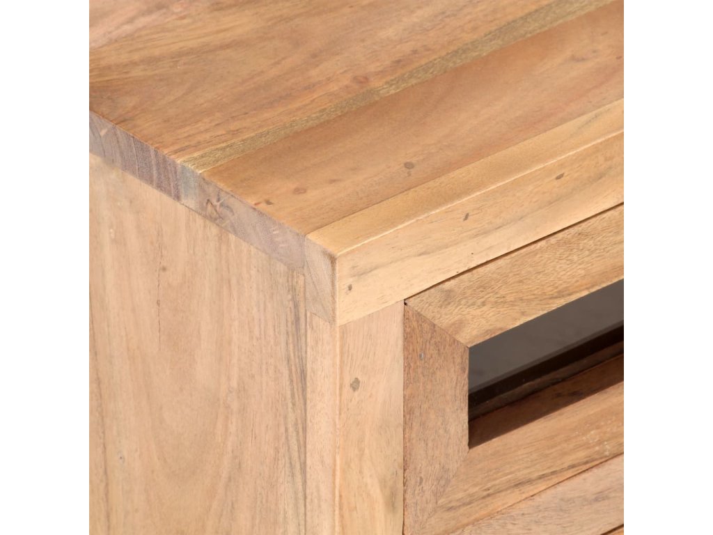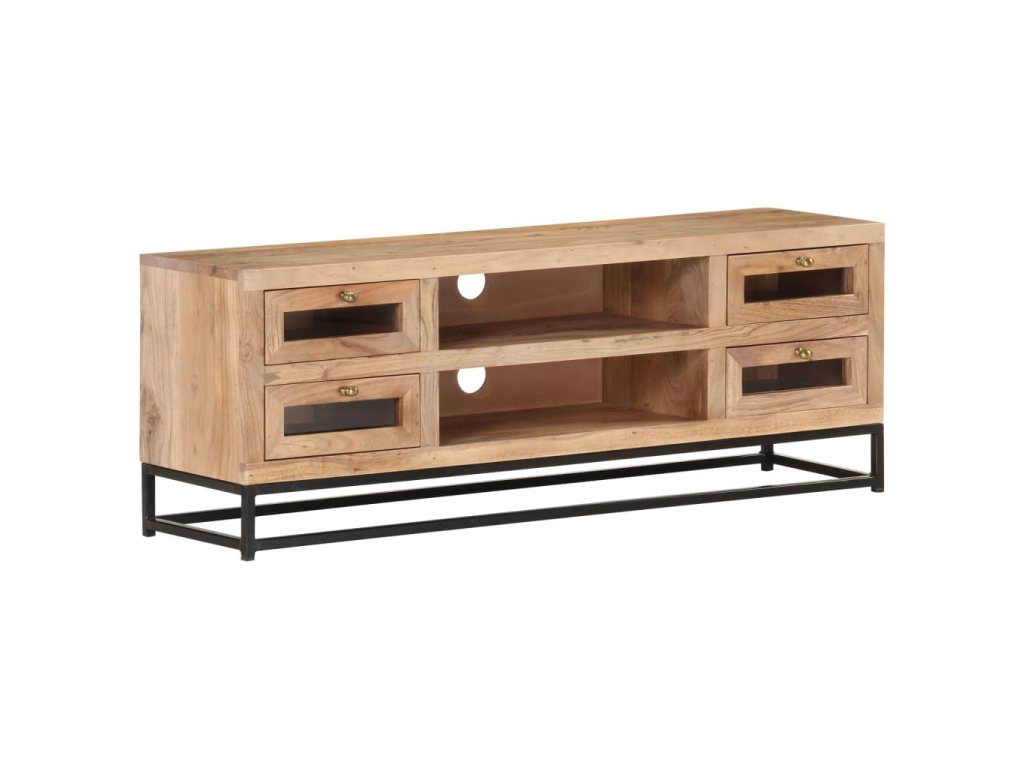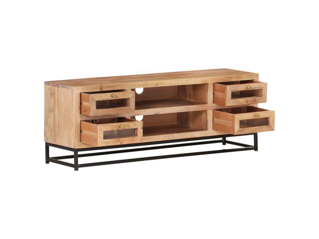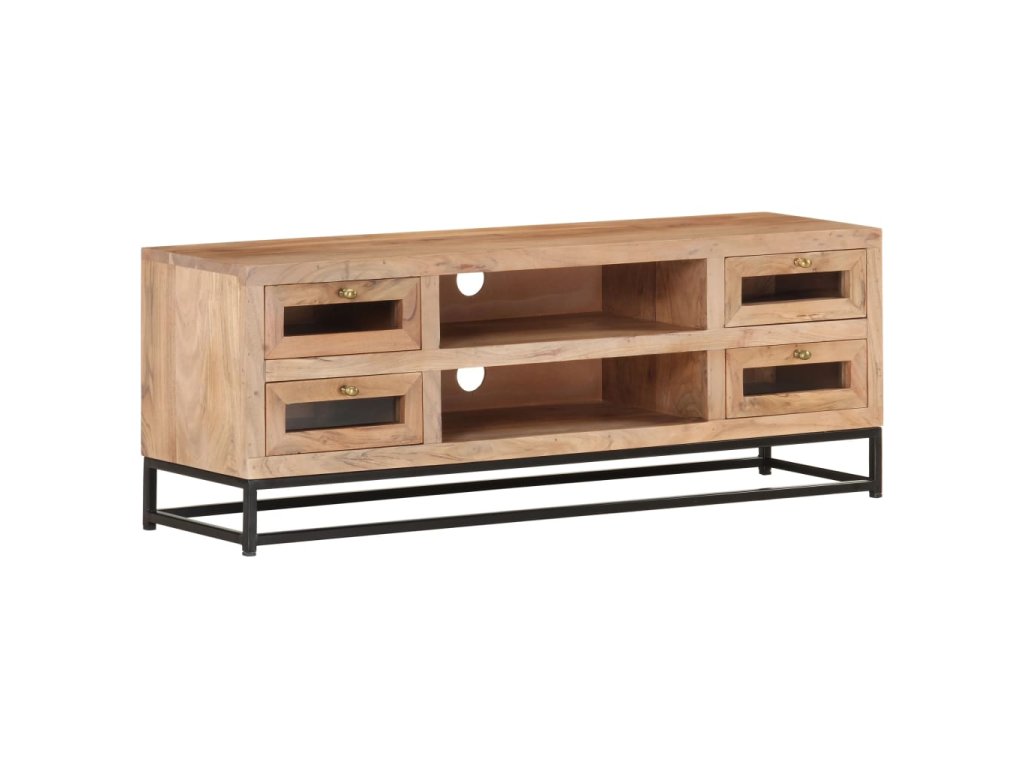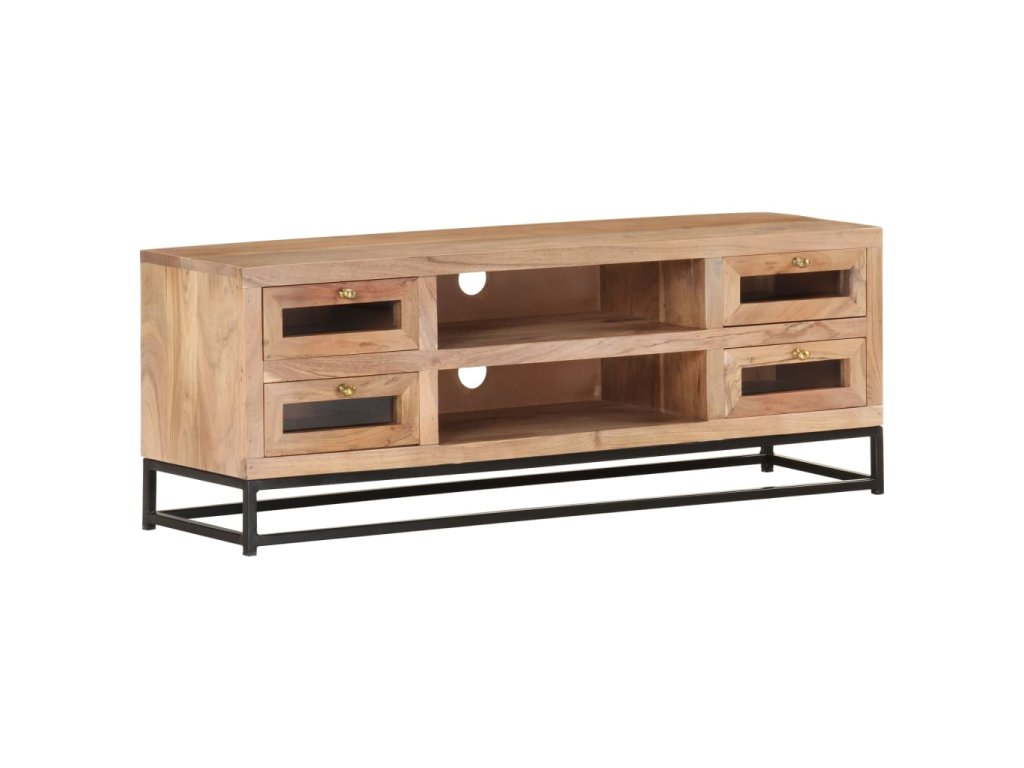 Stereo skříňka je vyrobená z masivního akáciového dřeva, je tedy velice stabilní a odolná. Zručné zpracování a překrásná kresba dřeva dávají každému kusu nábytku jedinečný charakter, kterým se lehce liší od všech ostatních. HiFi skříňka se 4 zásuvkami a 2 policemi nabízí místo pro přehledné uspořádání nejrůznějších věcí. A co víc, železná základna jí přidává na robustnosti.