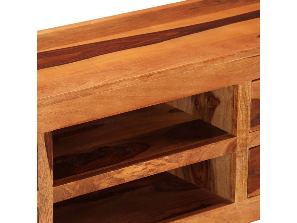 Příborník je vyroben z masivního dřeva, které je odolné a krásné. Navíc se neohýbá ani nepraská a je přirozeně odolné vůči trouchnivění. Tato krásně designovaná nízká skříňka je tudíž neuvěřitelně stabilní, odolná a esteticky zajímavá. Zručné řemeslné zpracování zaručuje, že se každá fáze výrobního procesu provádí s největší péčí, ať už se jedná o leštění nebo lakování. Stereo skříňka je zcela ručně vyrobená a vzhledem k esteticky přitažlivé kresbě dřeva je každý kus nábytku jedinečný a lehce odlišný od ostatních. HiFi skříňka má 4 zásuvky a 2 přihrádky, nabízí tudíž dostatek místa pro ukládání vašich multimediálních zařízení, knih a celé řady dalších věcí. Tento výrobek je dodávaný ve složeném stavu, montáž není nutná.