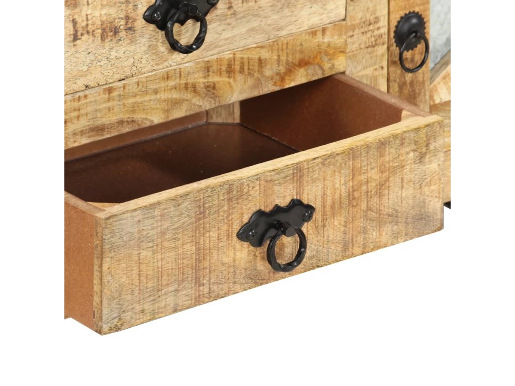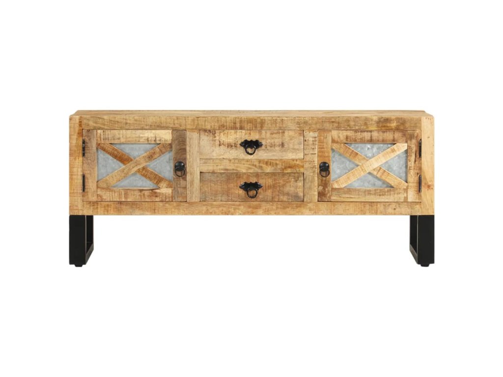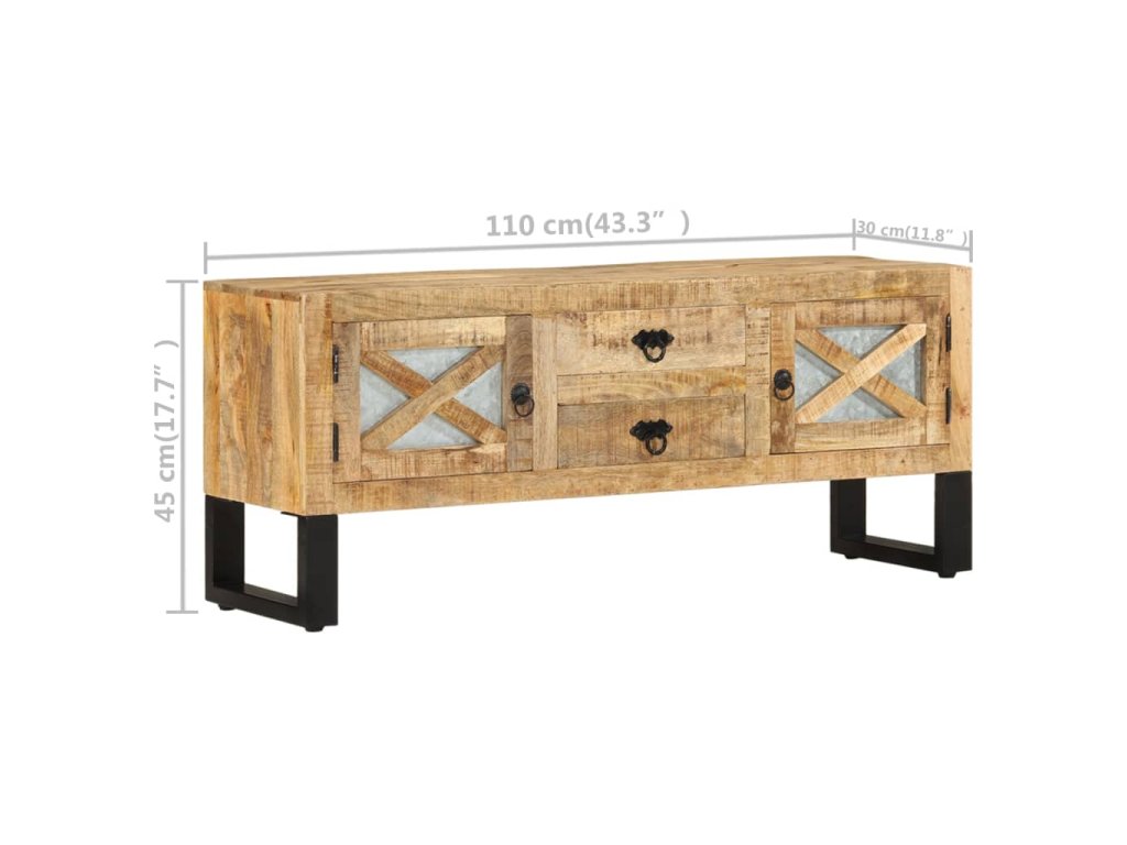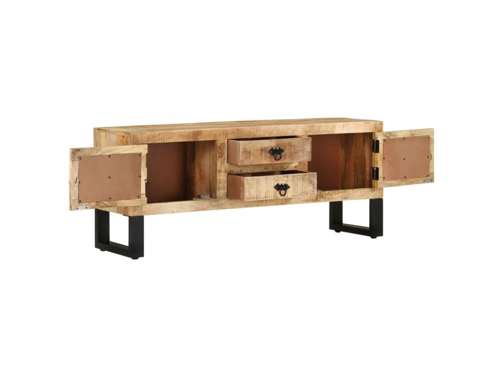 TV stolek je vyrobený z hrubého mangovníkového dřeva, které dokáže unést značnou váhu a skvěle odolává opotřebení i působení času. Řemeslné zpracování a krásná kresba dřeva propůjčují každému kusu nábytku jedinečný charakter, takže se od sebe jednotlivé skříňky lehce liší. Skříň navíc poskytuje spoustu prostoru pro uložení multimediálních zařízení, nosičů médií a všemožných dalších věcí.