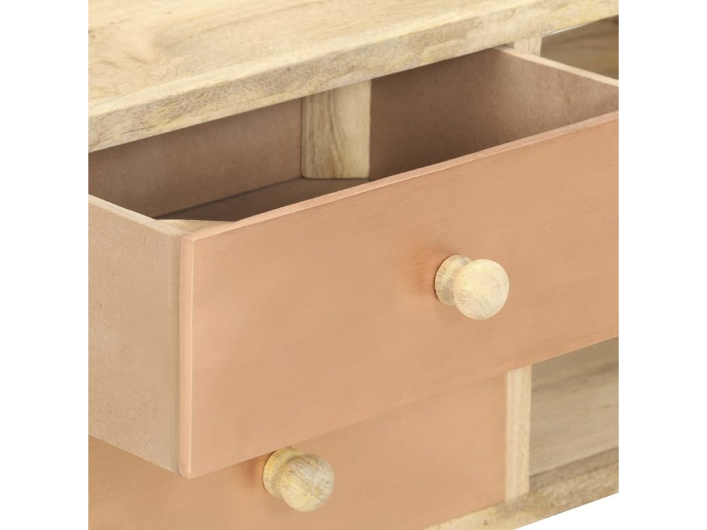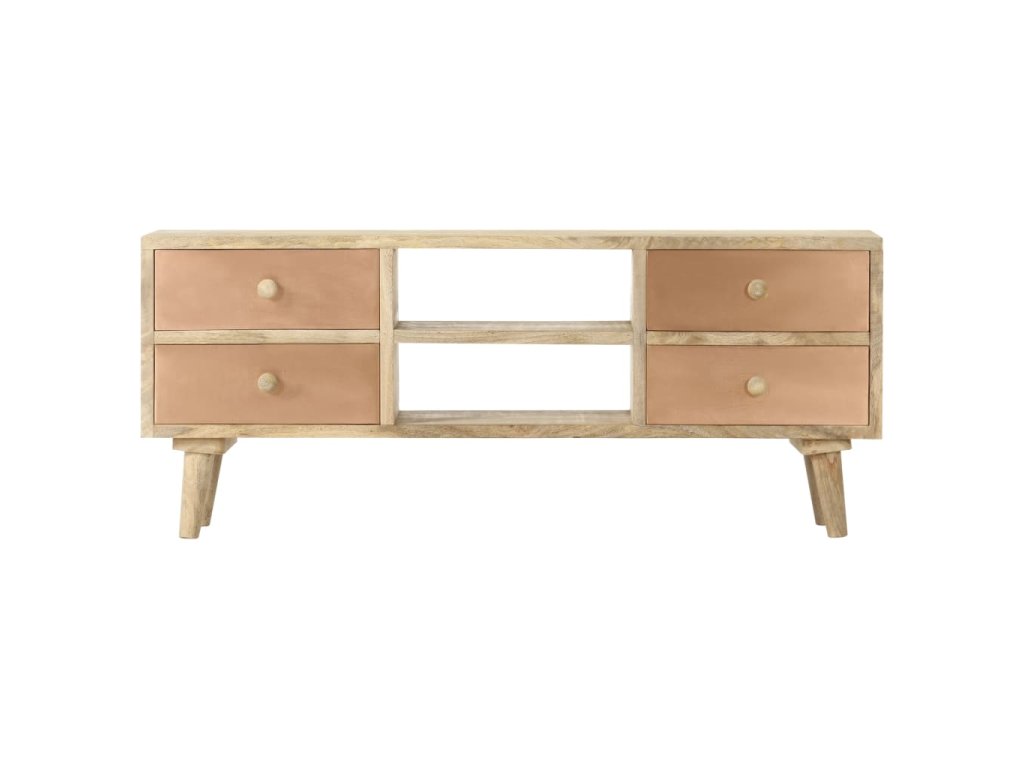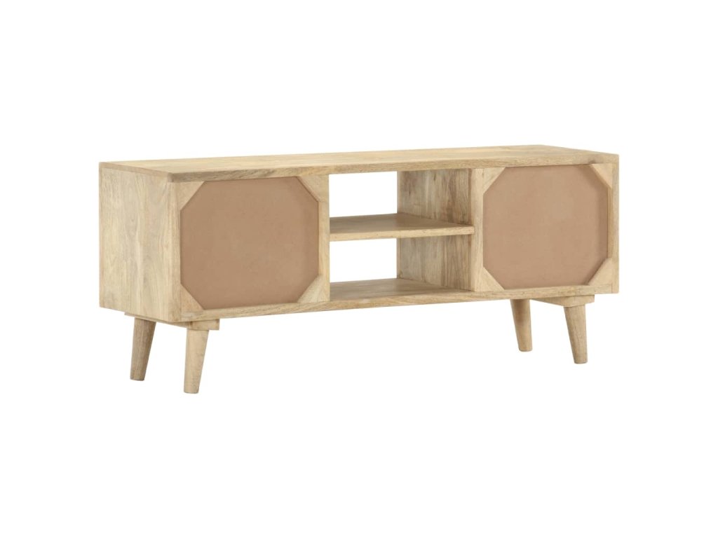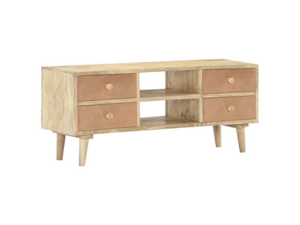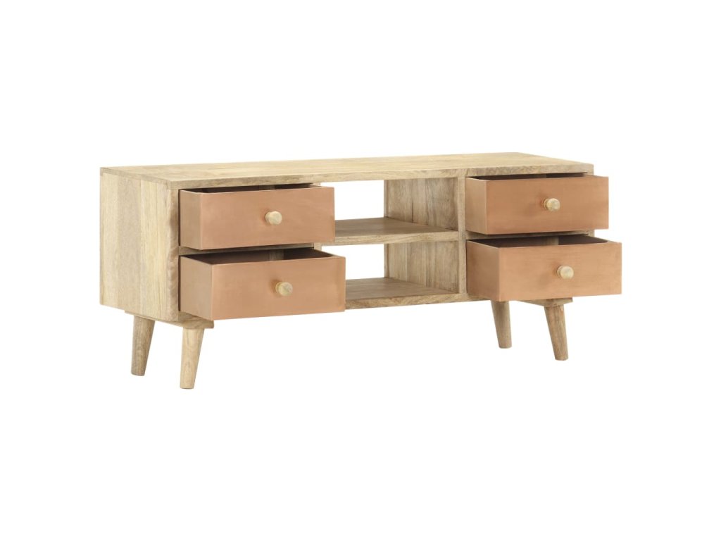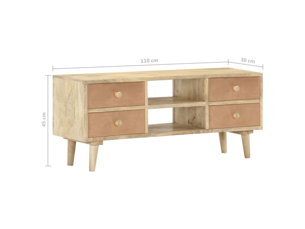 Mangovník je tropické tvrdé dřevo, které jednak unese značnou váhu a jednak výborně odolává působení času a neopotřebovává se. Precizní řemeslné zpracování a nádherná kresba dřeva navíc jednotlivé kusy nábytku vzájemně odlišují, takže nenajdete dva stejné. Televizní stolek nabízí spoustu úložného místa, můžete si do něj tedy přehledně uložit, co potřebujete, nebo si na něm vystavit různé dekorace.