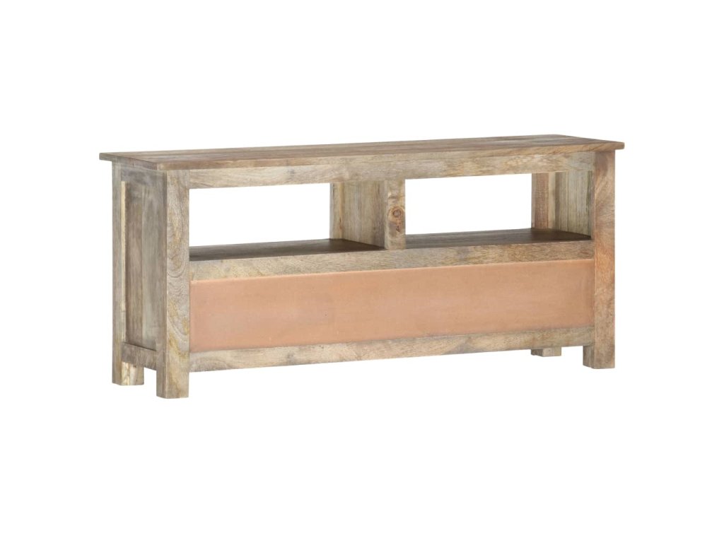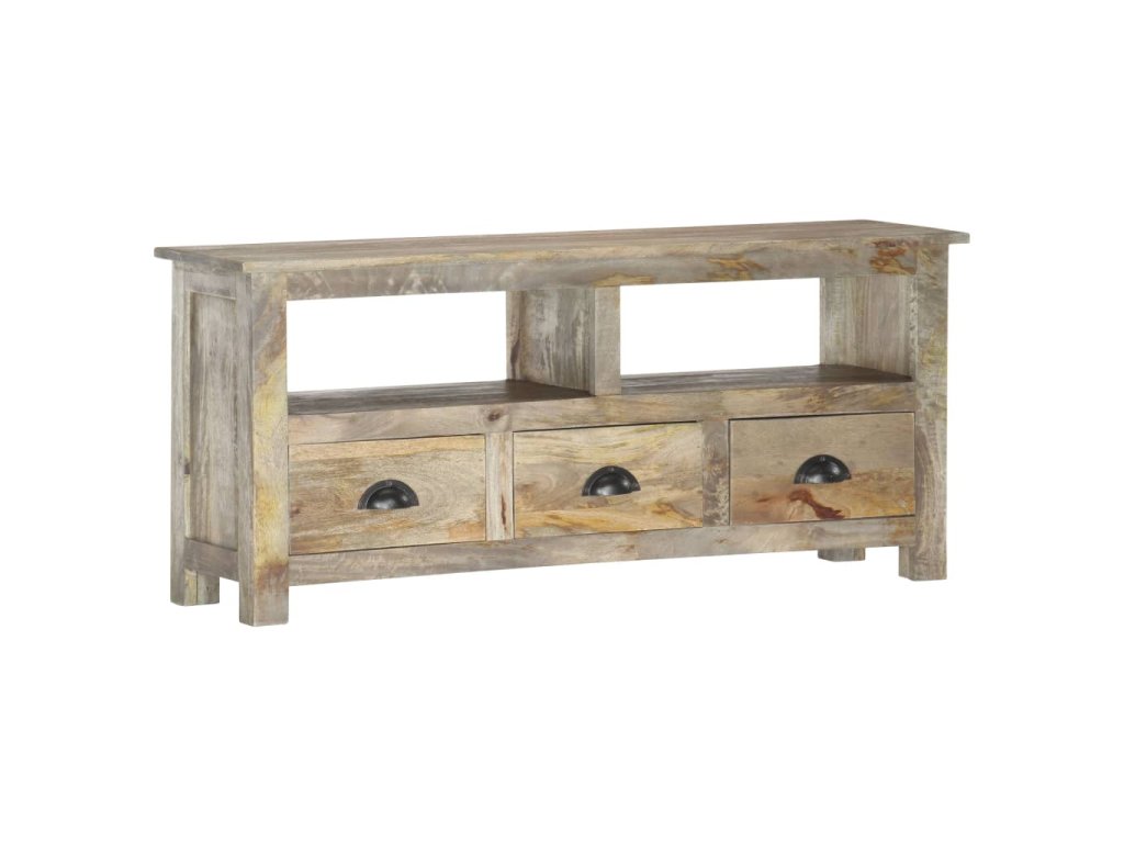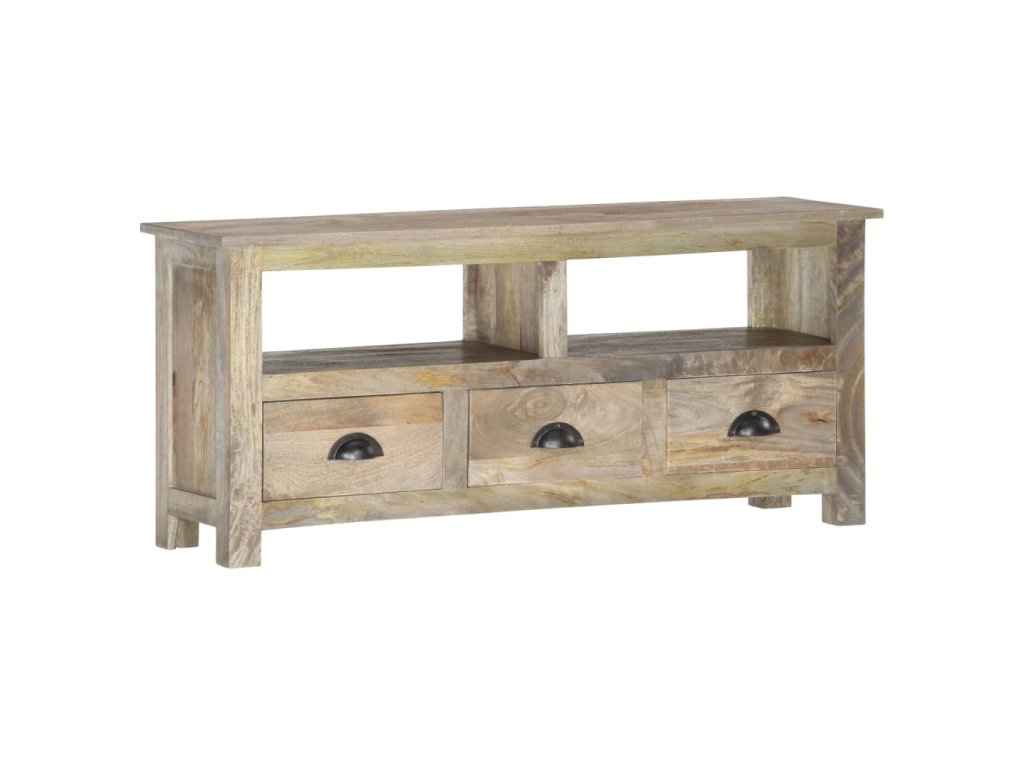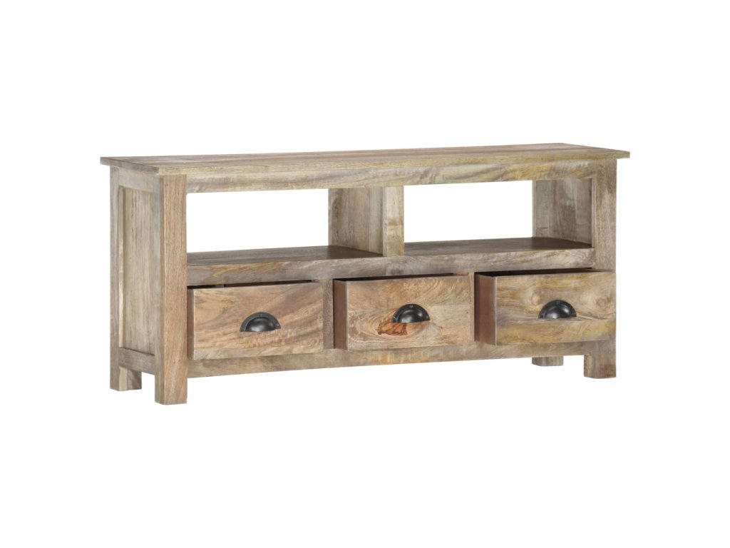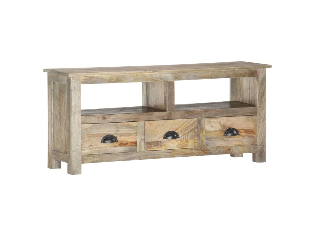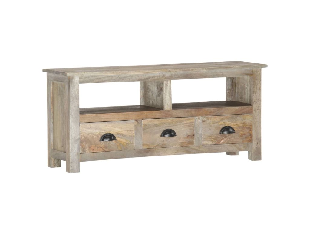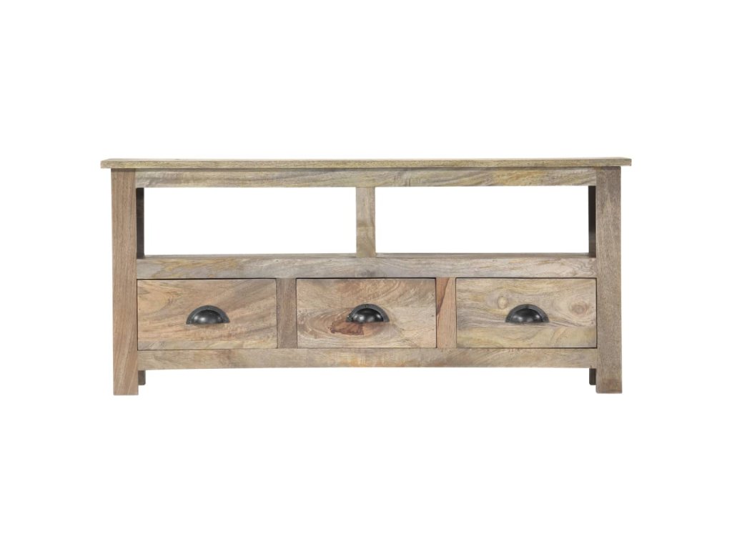 Je vyrobená z masivního mangovníkového dřeva, které je robustní, stabilní, odolné a krásné, a řemeslné zpracování přispívá k jejímu velkolepému retro stylu. Každá fáze výrobního procesu se provádí s největší péčí, ať už se jedná o leštění, natírání nebo lakování. Zručné řemeslné zpracování a krásná kresba dřeva propůjčuje každému kusu nábytku jeho jedinečný a od všech ostatních lehce odlišný vzhled. 2 police a 3 zásuvky vám poskytnou spoustu místa pro přehledné uspořádání vašeho DVD přehrávače, herní konzole, streamovacího zařízení i mediálních nosičů.