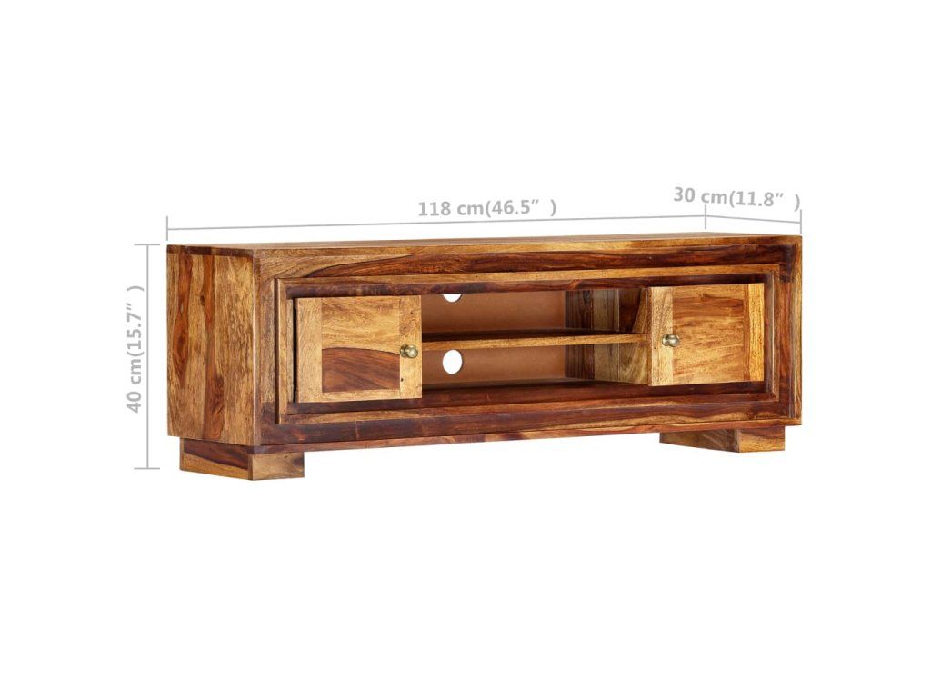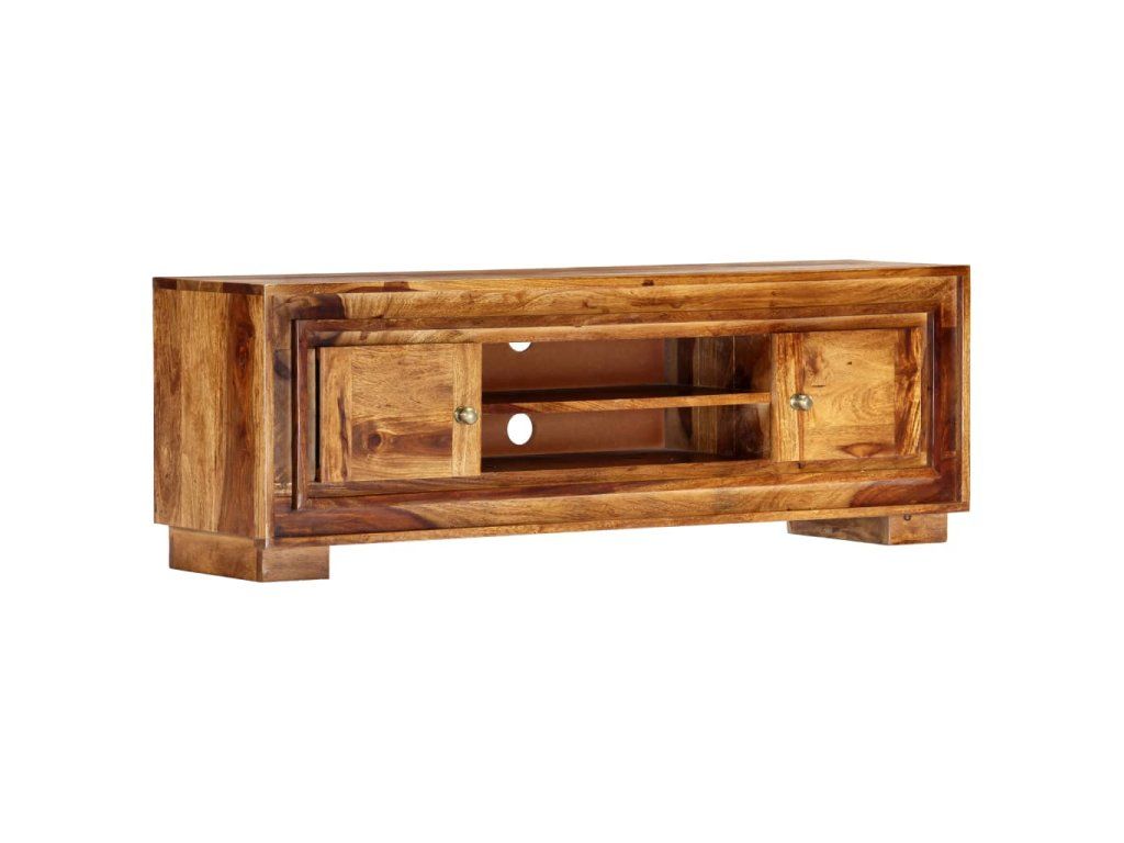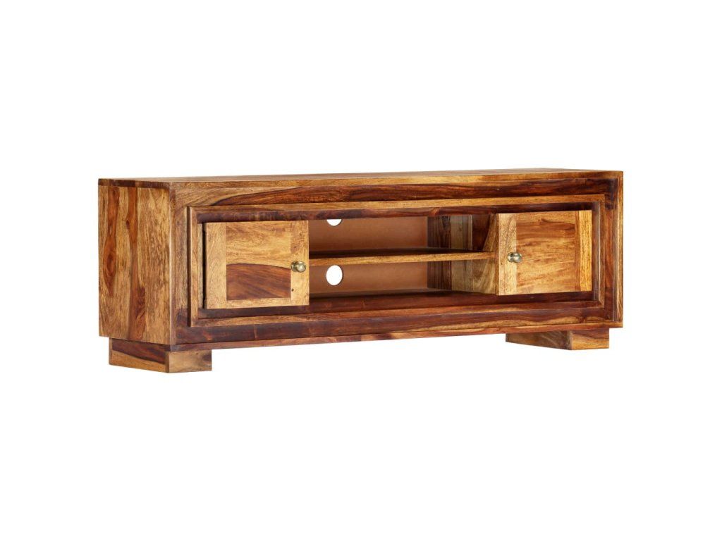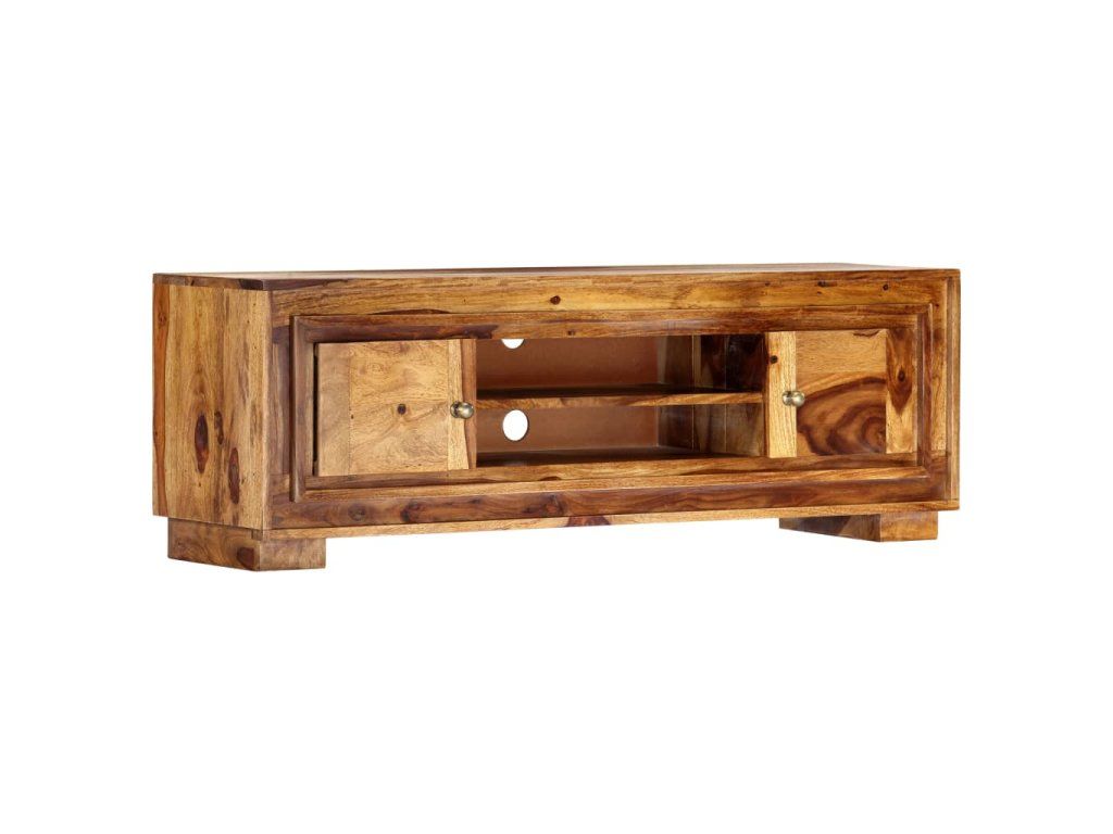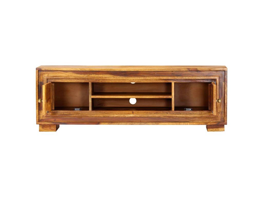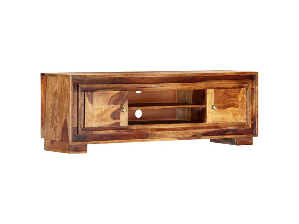 Ve vašem bydlení se rychle stane středem obdivné pozornosti. Skříňka pod televizi má 2 přihrádky s dvířky a 2 úložné police, ve kterých najdete dostatečný prostor pro umístění vašich multimediálních zařízení, herních konzol, časopisů a ukládání dalších malých předmětů. Tato HiFi skříňka je vyrobena z masivního akáciového dřeva. Akácie, také známý jako palisander nebo rosewood, je tropické tvrdé dřevo, které je oceňované pro svou bohatou kresbu. Vynikající řemeslné zpracování a krásná struktura dřeva dávají vzniknout unikátním TV stolkům, které se lehce liší od všech ostatních.