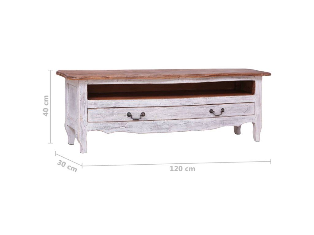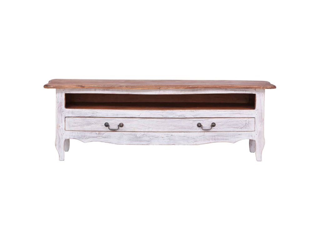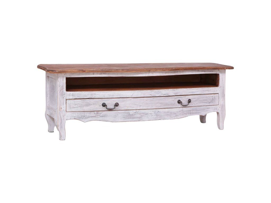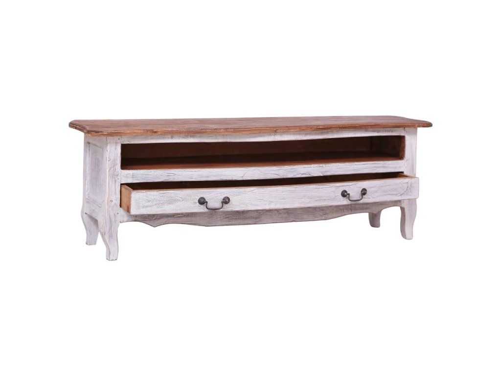 Zručné řemeslné zpracování a krásná kresba dřeva propůjčují každému TV stolku unikátní charekter, takže se každý kus lehce liší od všech ostatních. Tento výrazný stereo stolek s 1 velkou zásuvkou a 1 otevřenou přihrádkou vám pomůže udržovat ve vašich věcech pořádek. Tento výrobek je dodávaný ve složeném stavu, montáž není nutná.