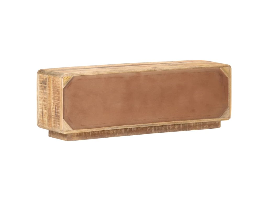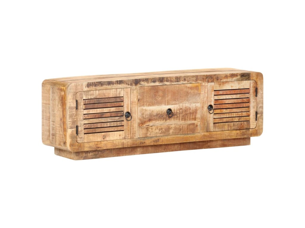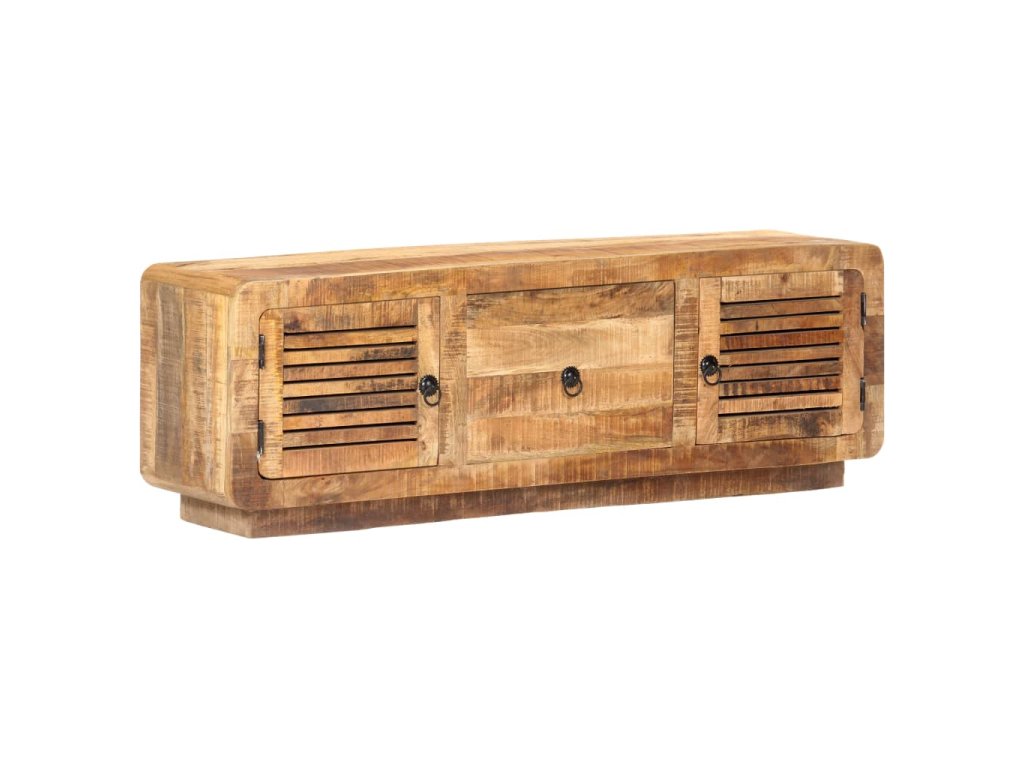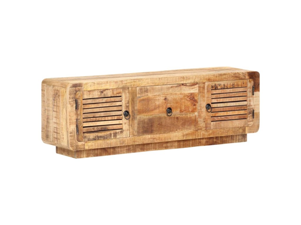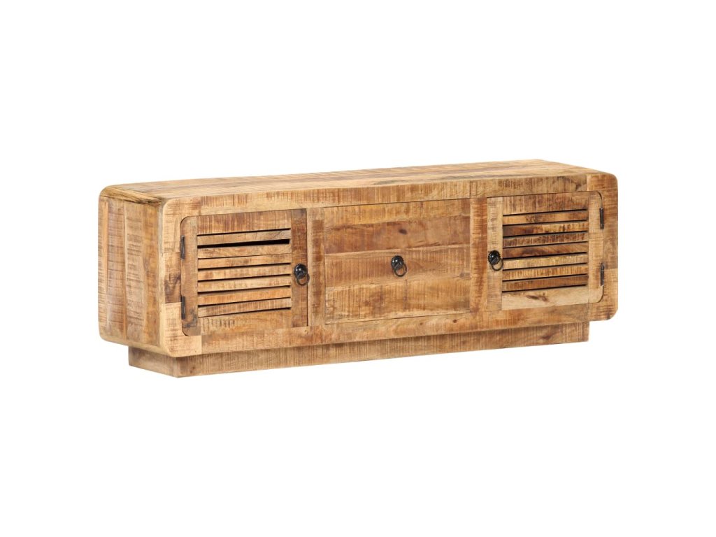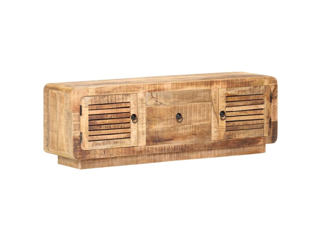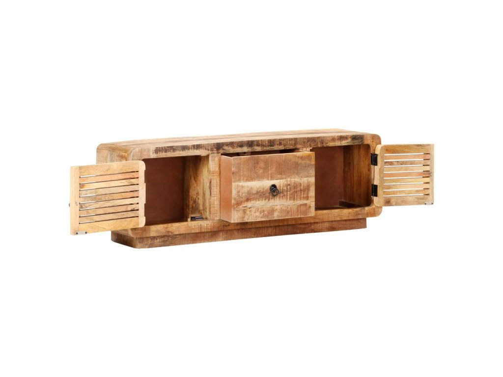 Televizní stolek je vyrobený z hrubého masivního mangovníkového dřeva s přírodním povrchem. Toto tropické tvrdé dřevo dokáže unést značnou váhu a skvěle odolává opotřebení i působení času, takže je velice stabilní a dlouho vám vydrží. Zručné zpracování a nádherná kresba dřeva dávají každému kusu jedinečný charakter, takže nenajdete dva stejné. Skříňka pod TV má dvě přihrádky s dvířky a zásuvku, ve kterých najdete spoustu úložného místa. Pevná horní deska je navíc jako dělaná k vystavení nejrůznějších dekorací, jako jsou zarámované fotografie, pokojové rostliny, vázy apod.