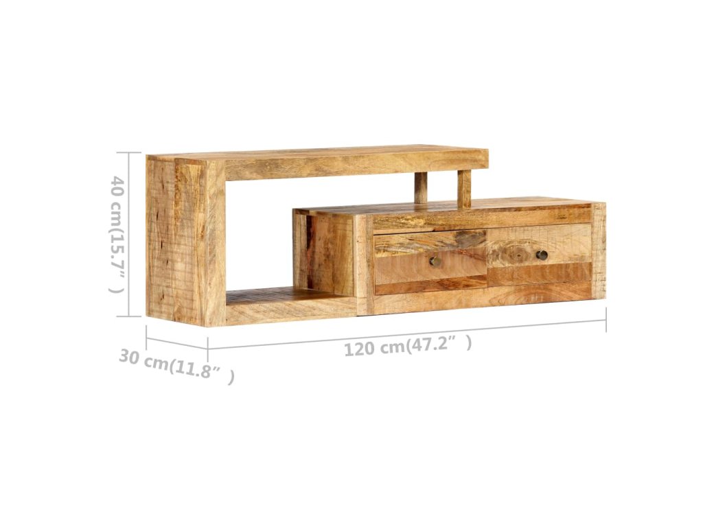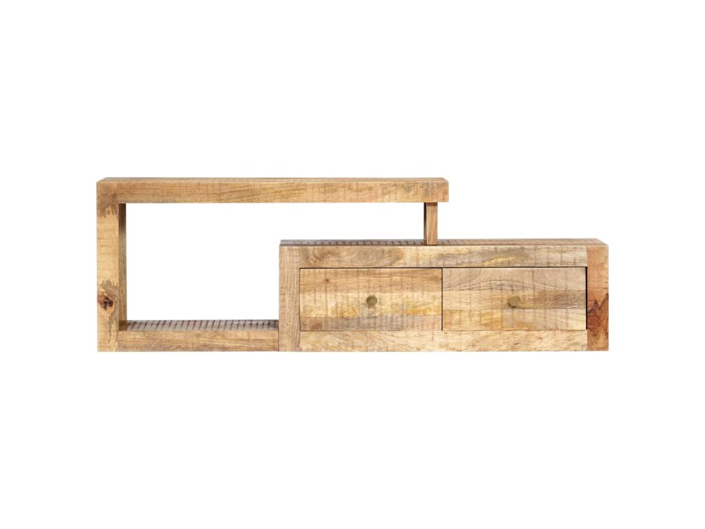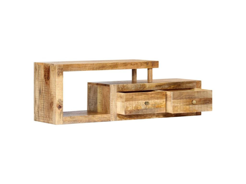 TV stolek je vyroben z masivního mangovníkového dřeva, a proto je mimořádně stabilní a odolný. Mangovník má husté a robustní tvrdé dřevo, jehož povrch se pyšní krásnou hnědou nebo zlatou kresbou. Každý krok výrobního procesu je prováděn s největší pečlivostí, ať už se jedná o leštění, natírání či lakování. TV stolek navíc disponuje dvěma zásuvkami pro ukládání všelijakých drobností a přihrádkou na multimediální zařízení, knihy a nejrůznější další předměty. Skříňka pod TV je již sestavena; další montáž není nutná.