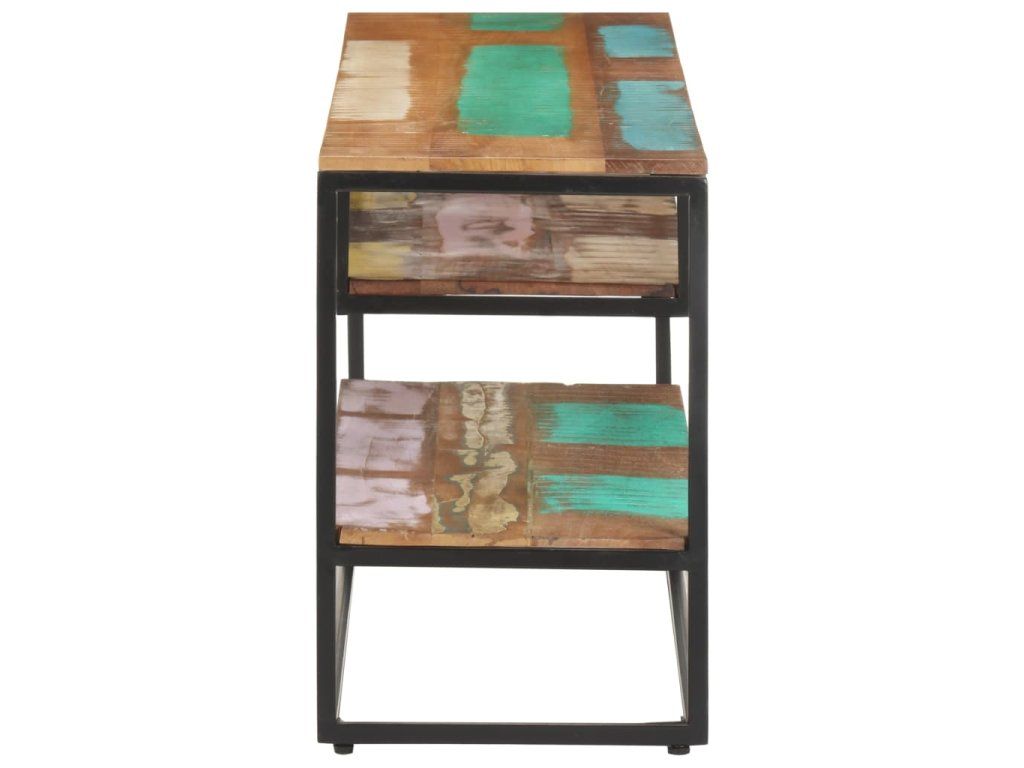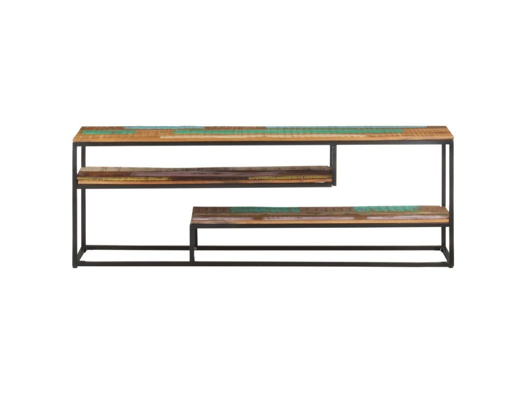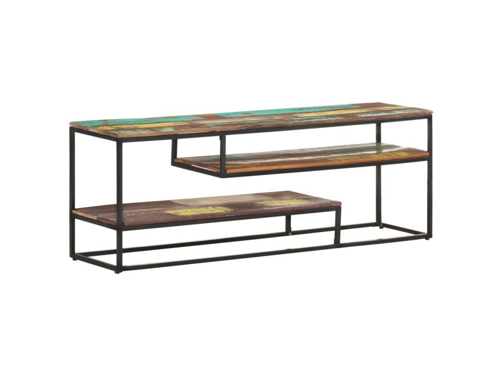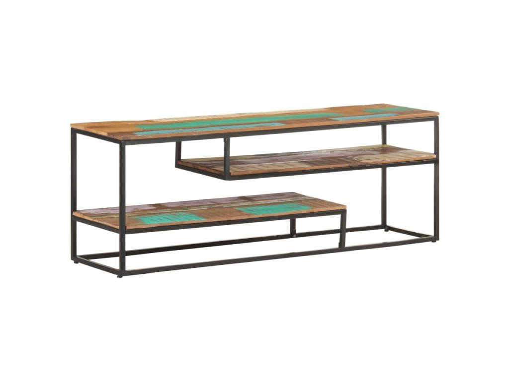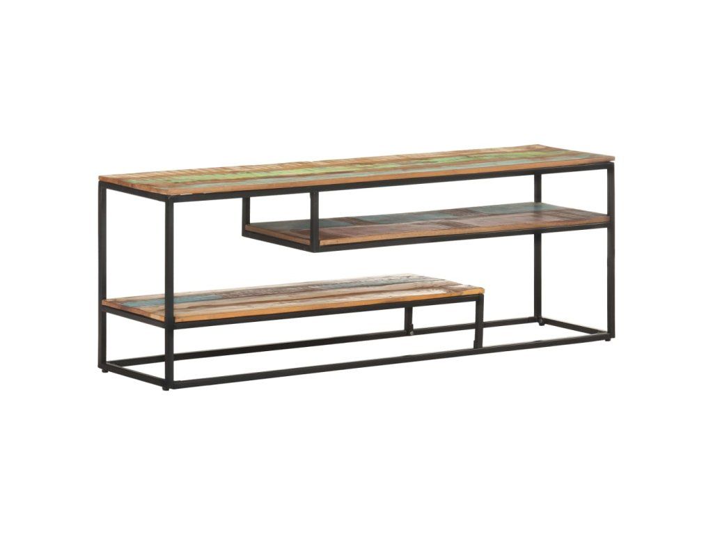 Stereo skříňka je vyrobená z masivního recyklovaného dřeva, které pochází z trámů, podlah a podpěrných nosníků ze starých budov určených k demolici. Sestává tedy z různých druhů dřeva, jako jsou teak, tvrdé dřevo, tropické dřevo, mangovník apod. Recyklované dřevo tak nabývá vlastností všech těchto rozličných typů dřevin. Navíc je již zestárlé, zvětralé a vyschlé, takže se nesmršťuje ani neohýbá. Ocelový rám zase zlepšuje stabilitu skříňky. Tři poličky vám poskytnou spoustu místa, kam si můžete uložit svá multimediální zařízení, knížky a všelijaké další věci.